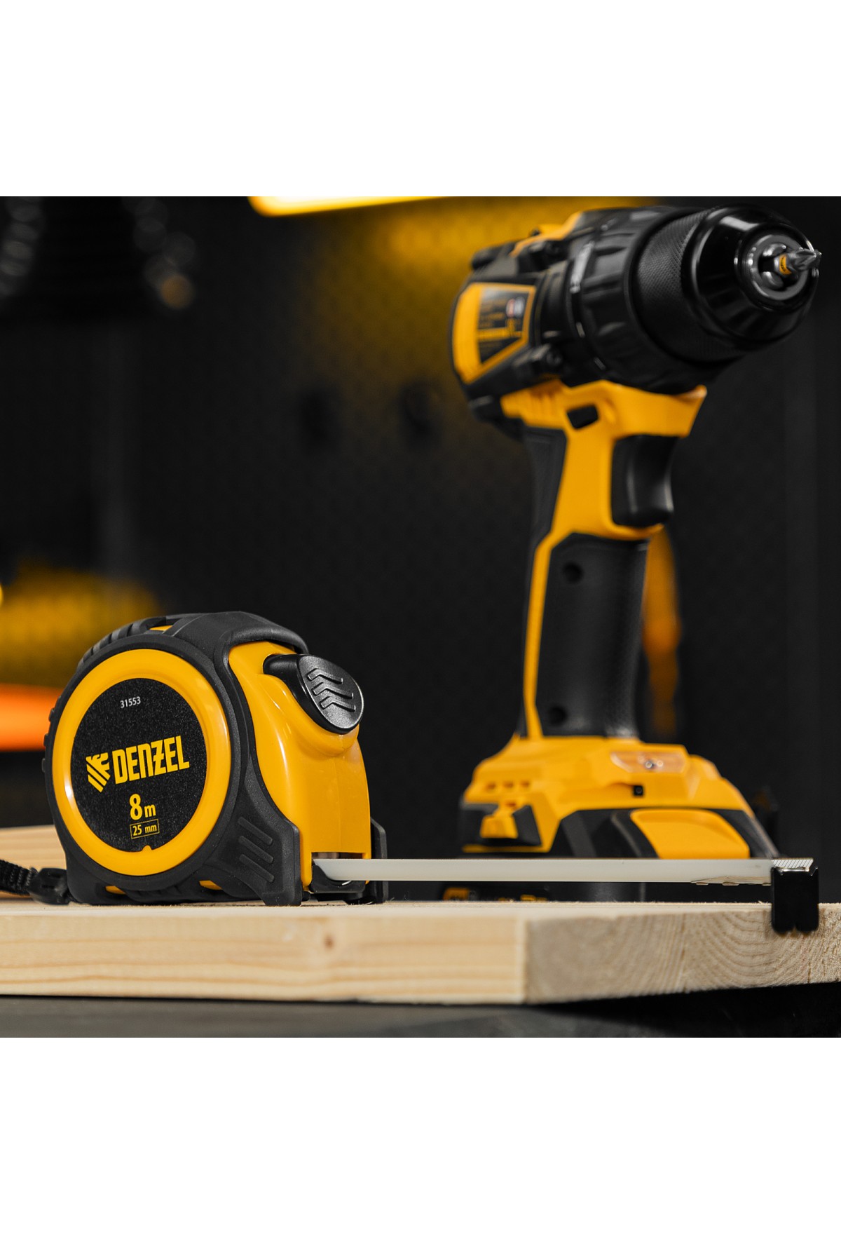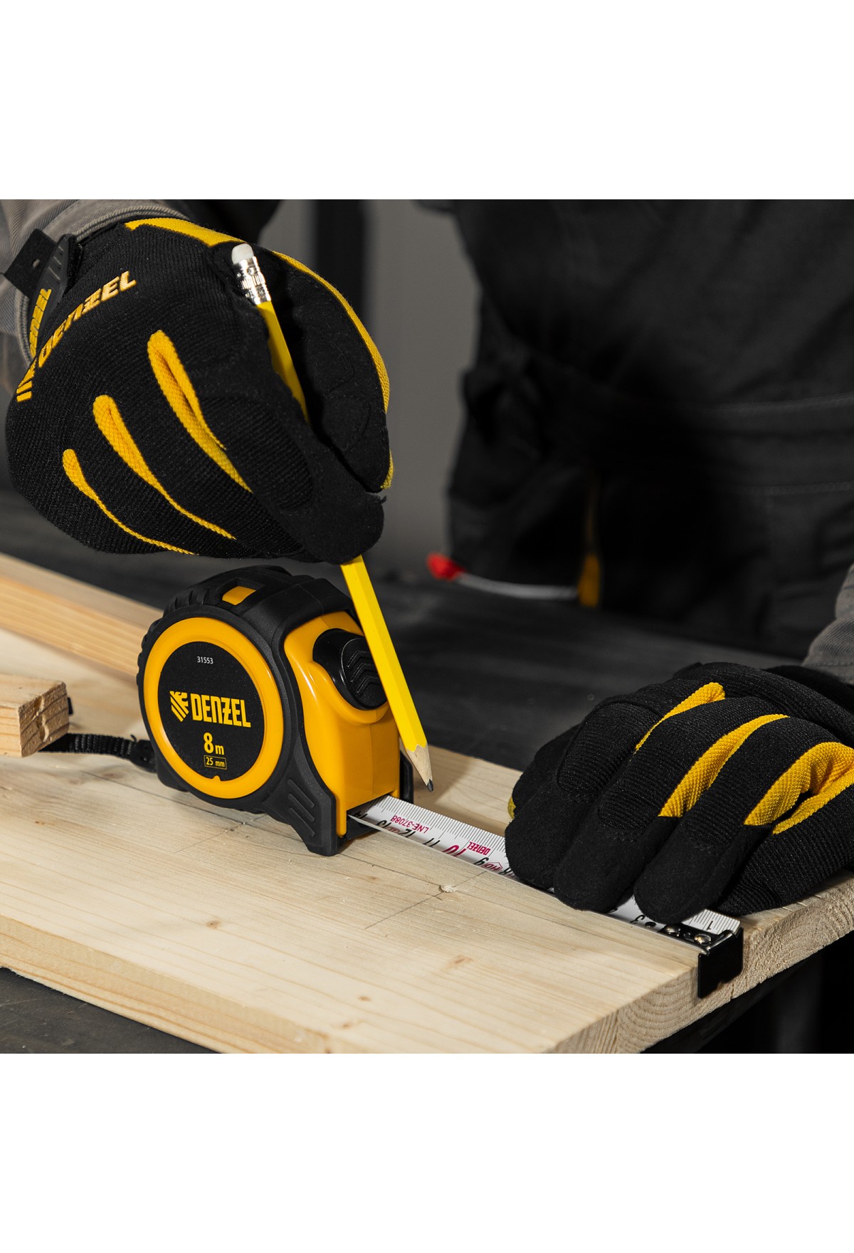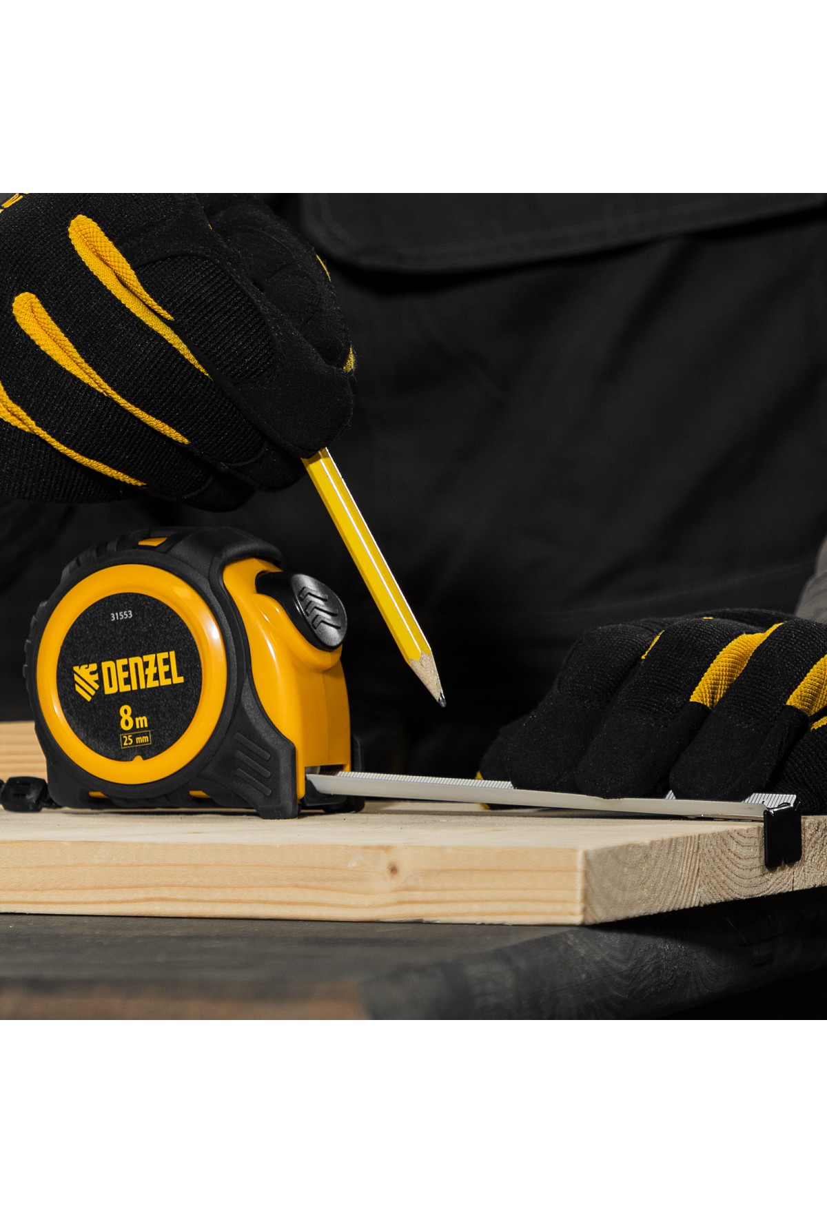 • Рулетка 8м х 25мм, обрезиненный корпус, автоматическая фиксация Denzel