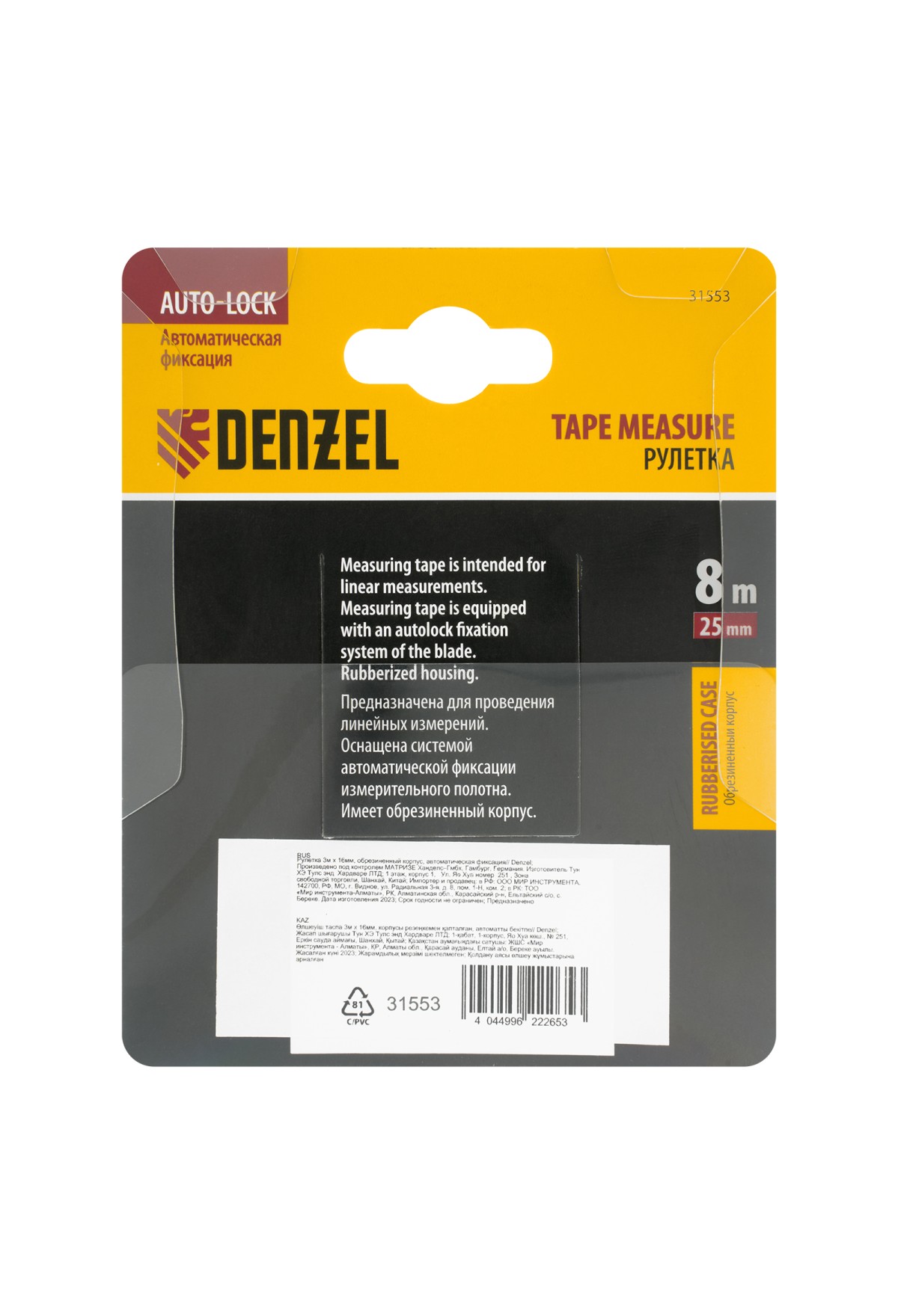 Тэги: Рулетка 8м х 25мм, обрезиненный корпус, автоматическая фиксация Denzel, VR6-31553, DENZEL, VR6, VR6-Измерительный инструмент, VR6-Рулетки