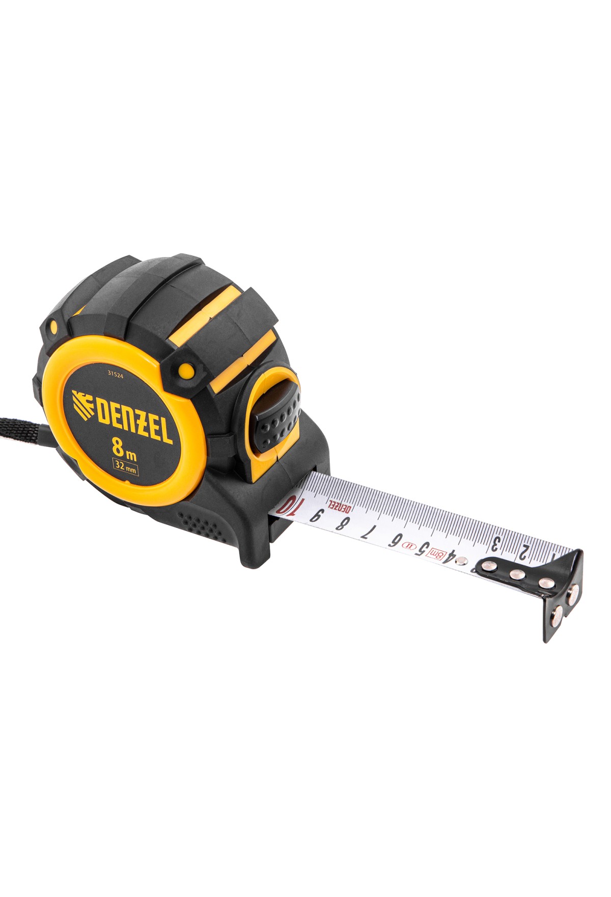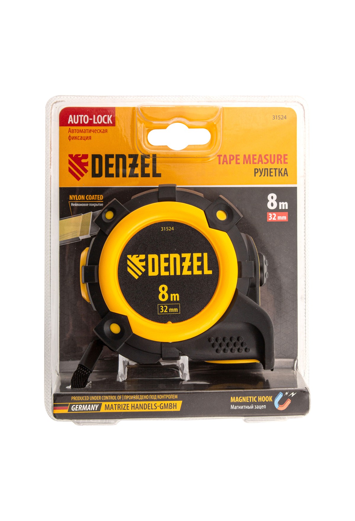 Рулетка Denzel 31524 с автоматической фиксацией полотна размером 8 м х 32 мм, с нейлоновым покрытием, магнитным зацепом и двухсторонней разметкой, предназначена для измерения расстояний и определения габаритов различных предметов. Лента автоматически фиксируется в вытянутом положении, что упрощает работу. Рулетка удобна для работы в труднодоступных местах, будет полезна во время строительных и ремонтных работ.