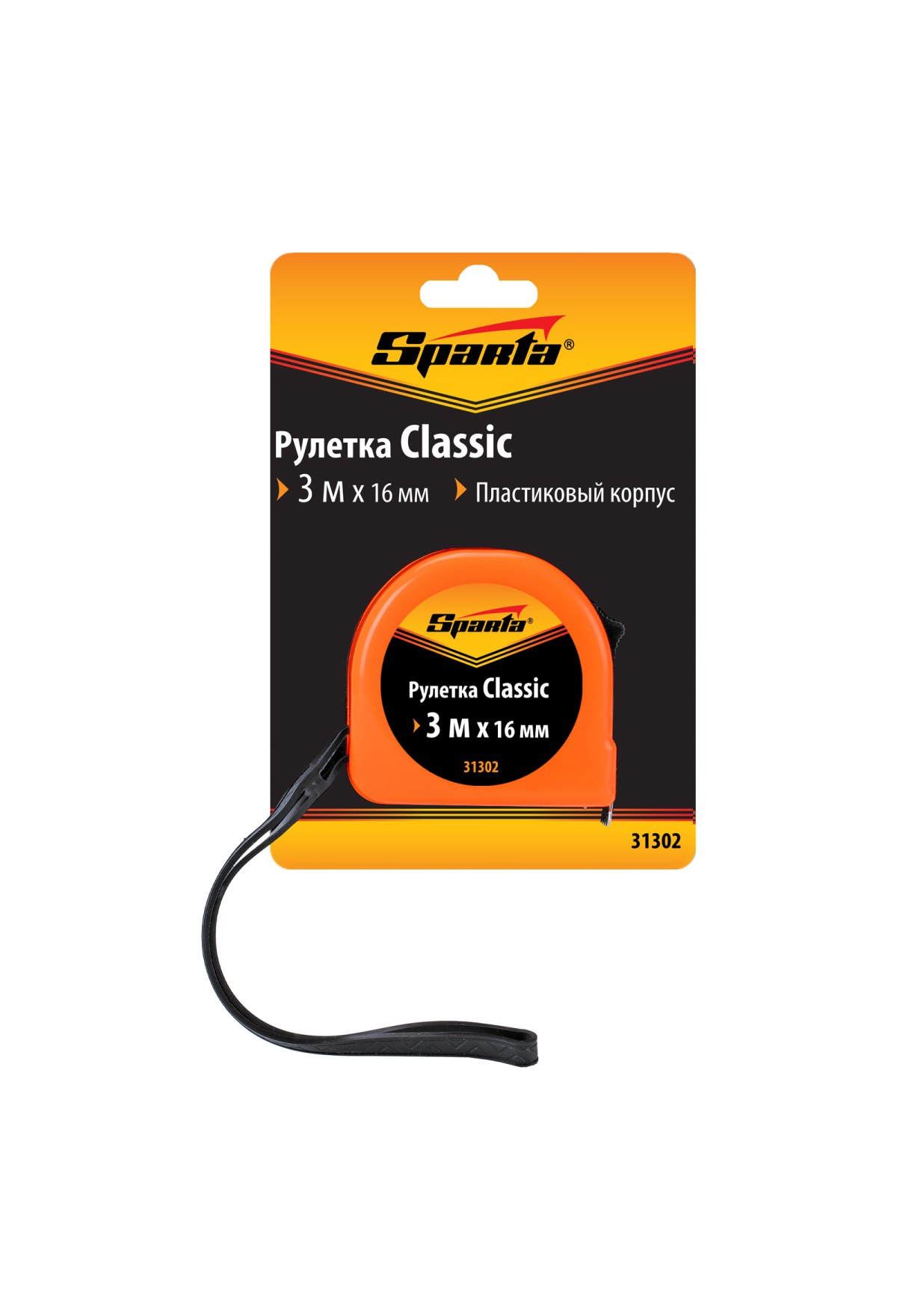 Рулетка Classic,3 м х 16 мм,пластиковый корпус Sparta
