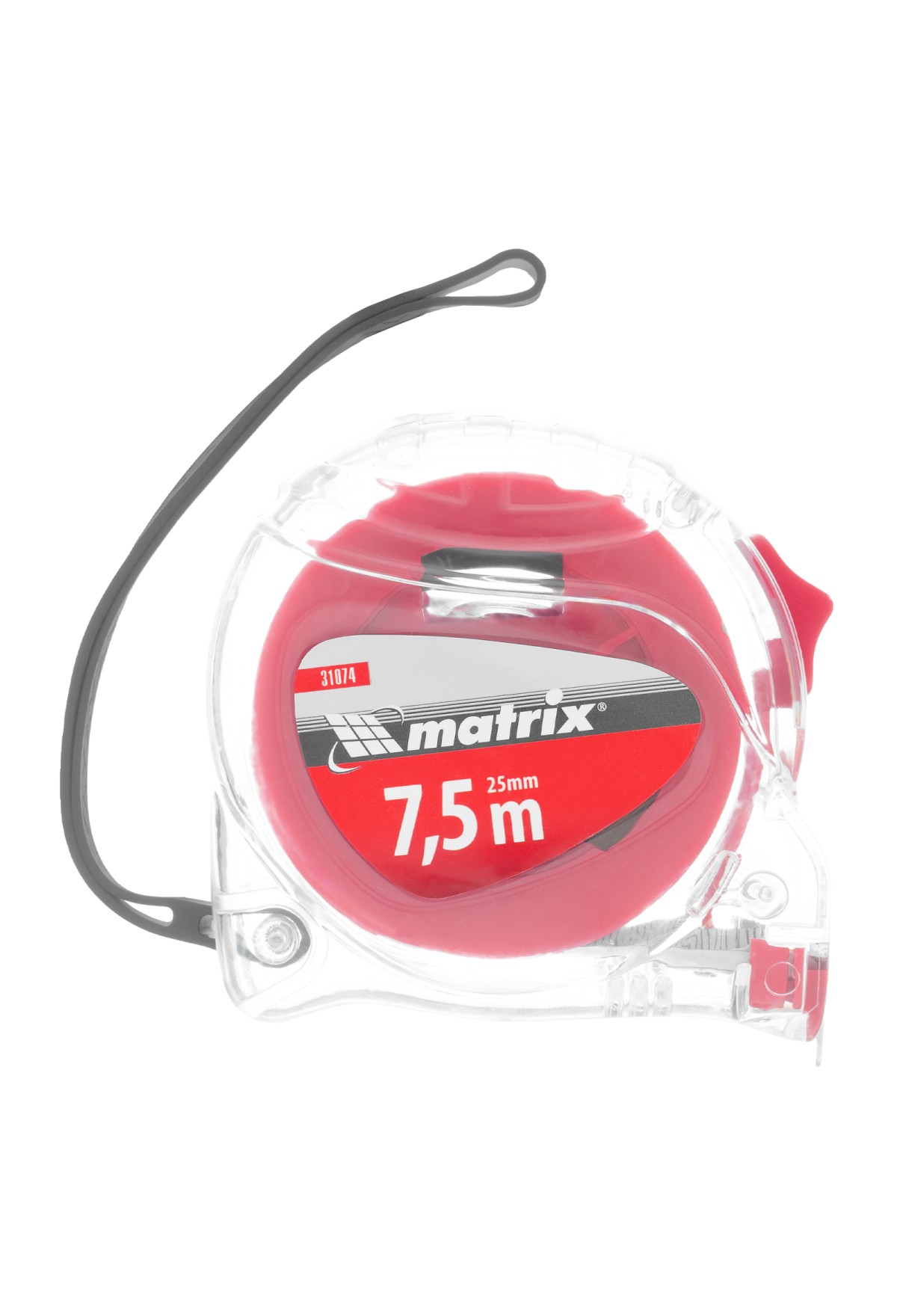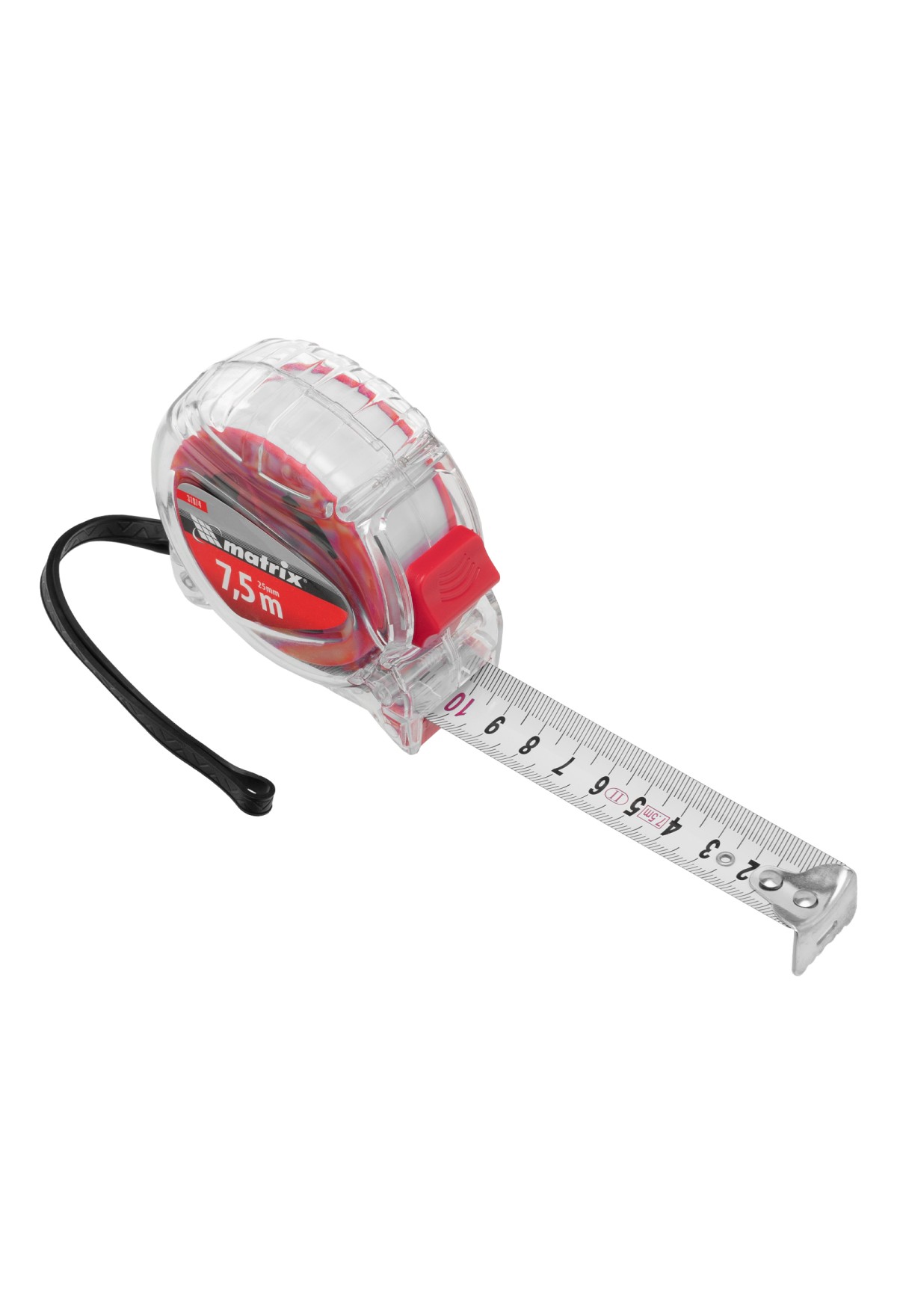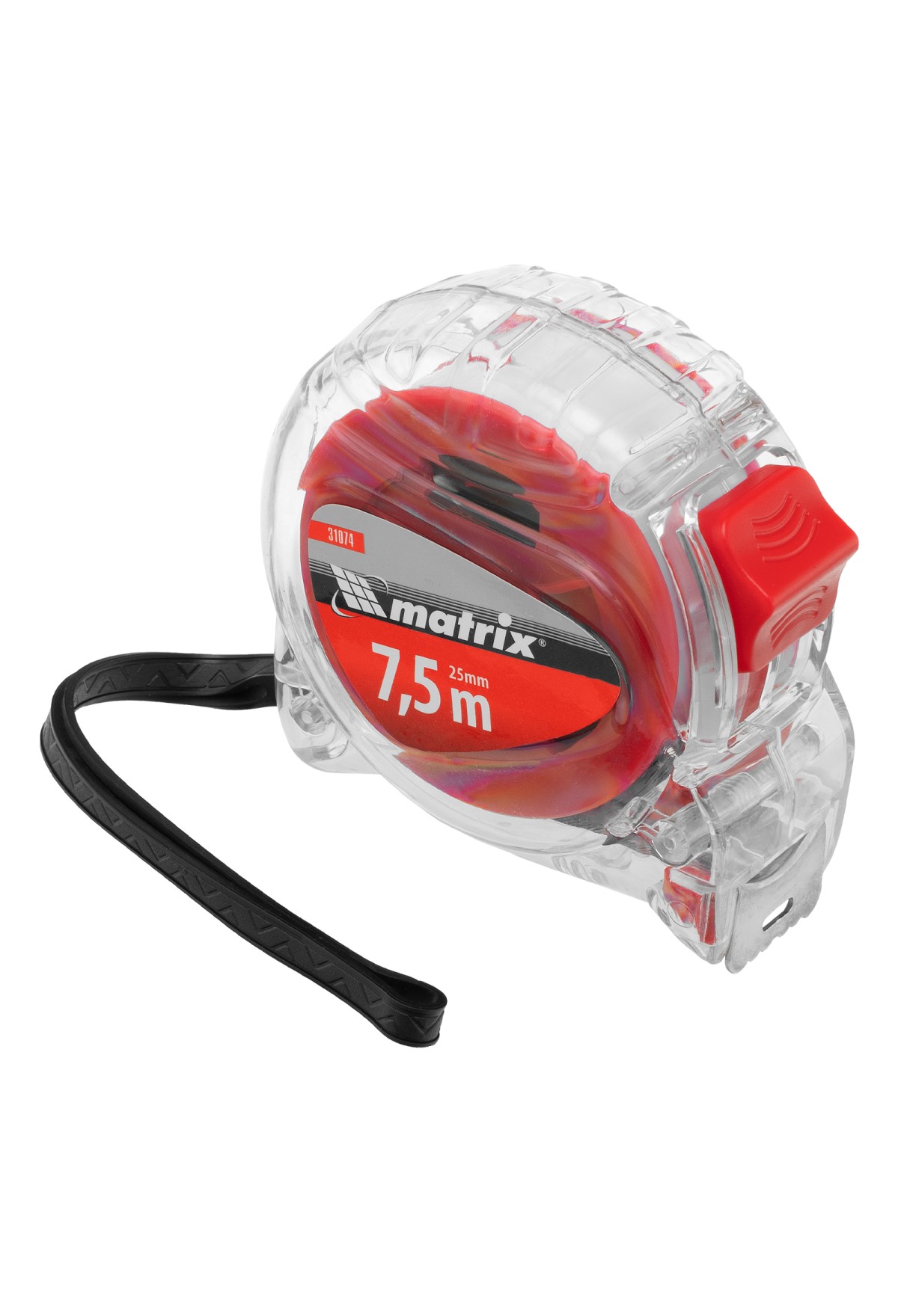Рулетка Matrix Crystal 31074 с лентой длиной 7,5 м и шириной 25 мм, в корпусе из поликарбоната, — измерительный инструмент, использующийся как в профессиональной сфере, так и в быту. Отличительной особенностью модели является корпус из высокопрочного поликарбоната, характеризующийся повышенной устойчивостью к механическим повреждениям.