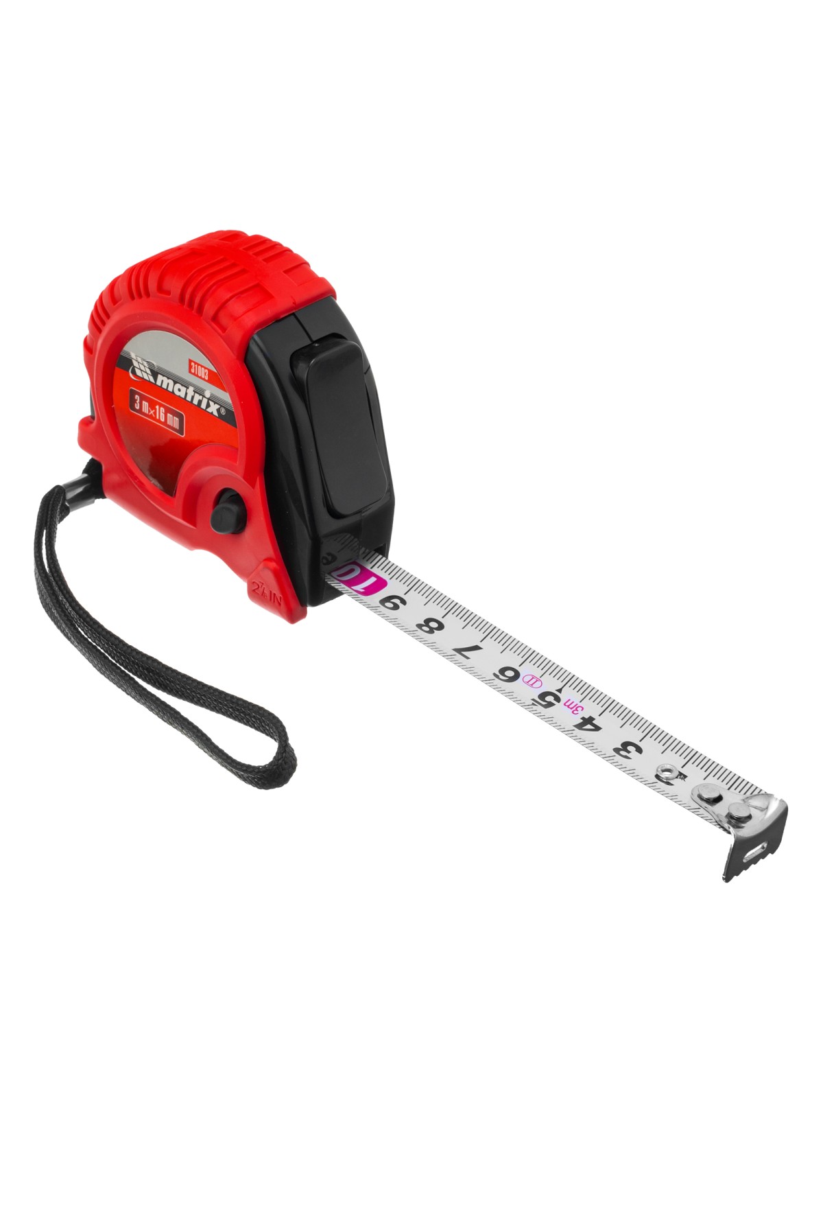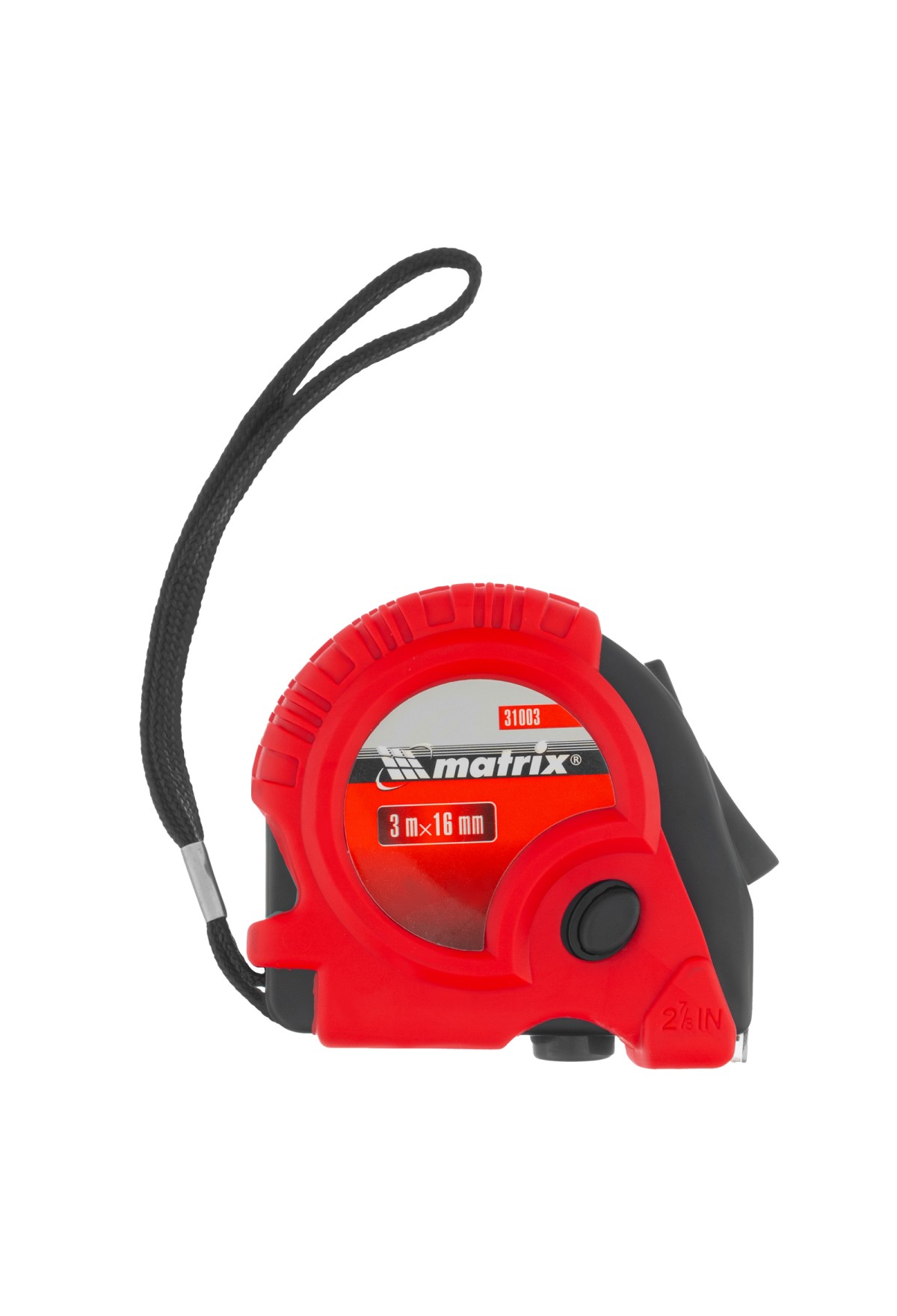 Рулетка Matrix Rubber 31003 с лентой длиной 3 м и шириной 16 мм, в обрезиненном корпусе, — измерительный инструмент для определения размеров и расстояний. Имеет самый распространенный 2 класс точности и цену деления 1 мм. Зацеп надежно закреплен двумя заклепками и не отскочит во время работы. Рулетка будет полезна во время ремонта и строительства, пригодится также в домашнем хозяйстве.