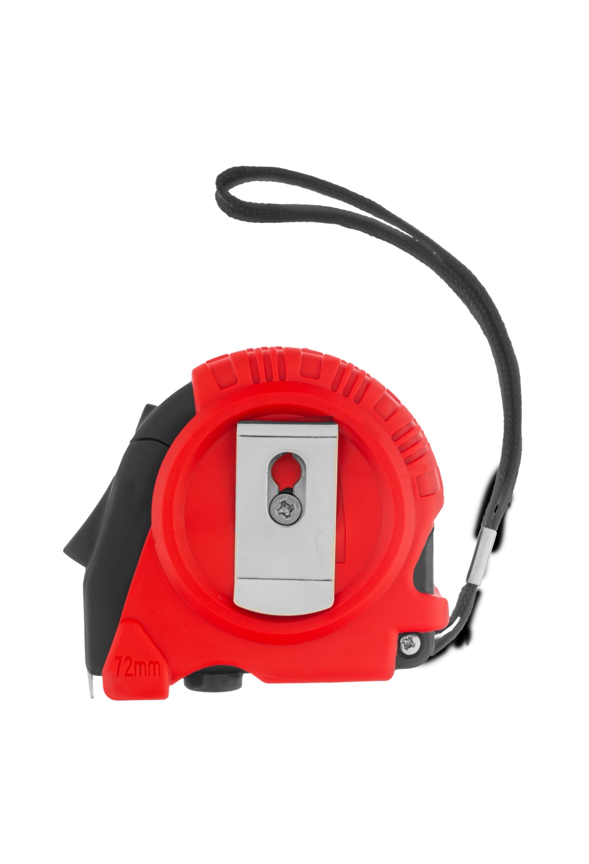 - Защита от падения — шнурок позволяет закрепить рулетку на запястье, клипса на корпусе — на поясном ремне.