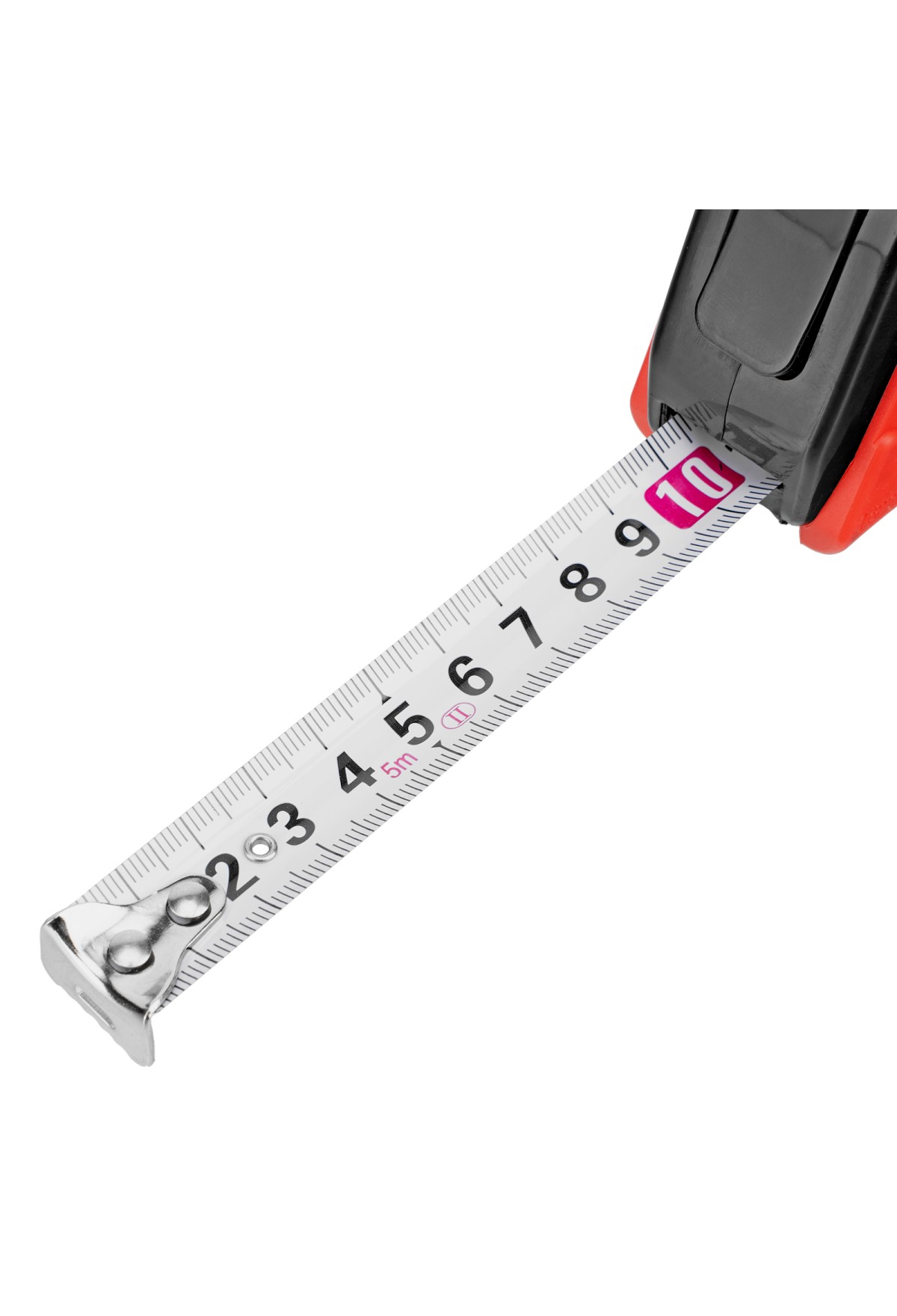 Рулетка Matrix Rubber 31002 с лентой длиной 5 м и шириной 19 мм, в обрезиненном корпусе, — измерительный инструмент для определения размеров и расстояний. Имеет самый распространенный 2 класс точности и цену деления 1 мм. Зацеп надежно закреплен двумя заклепками и не отскочит во время работы. Рулетка будет полезна во время ремонта и строительства, пригодится также в домашнем хозяйстве.