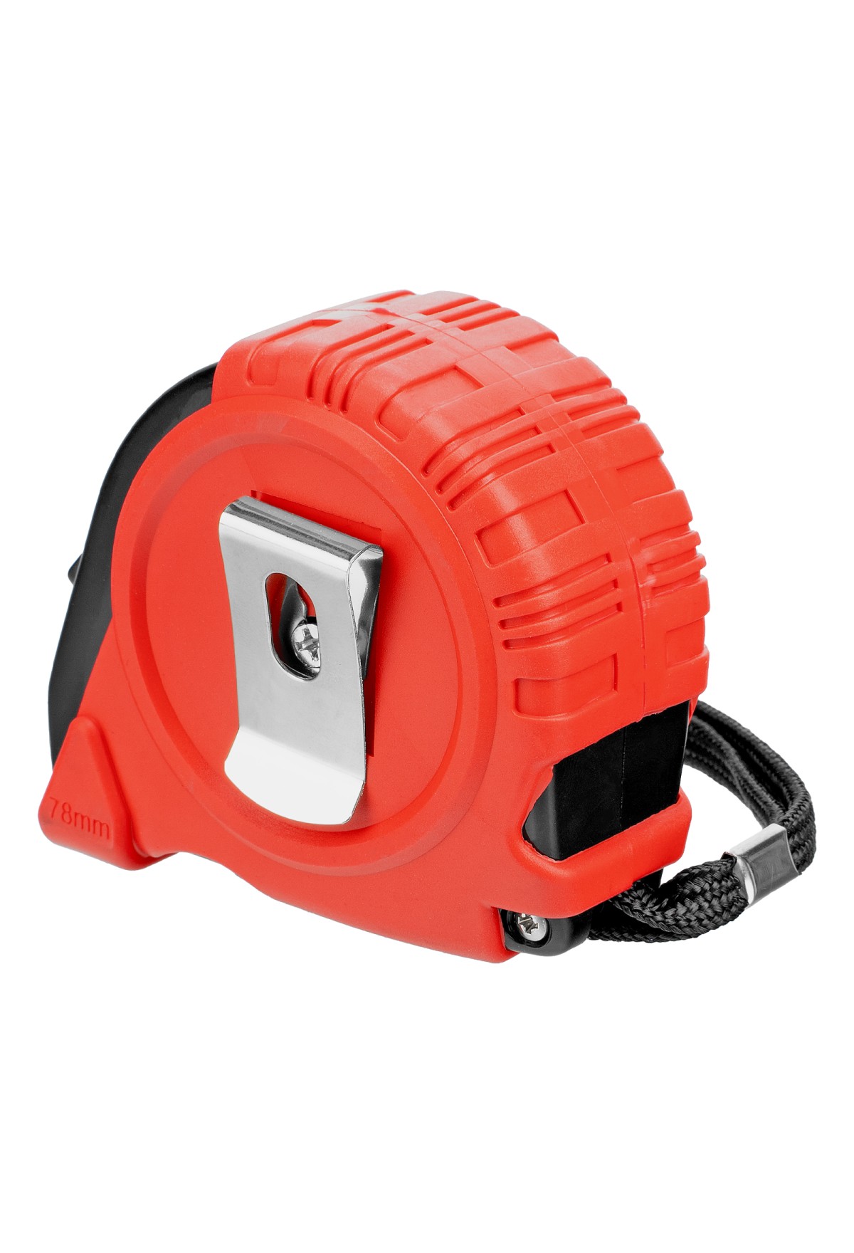- Защита от падения — шнурок позволяет закрепить рулетку на запястье, клипса на корпусе — на поясном ремне.