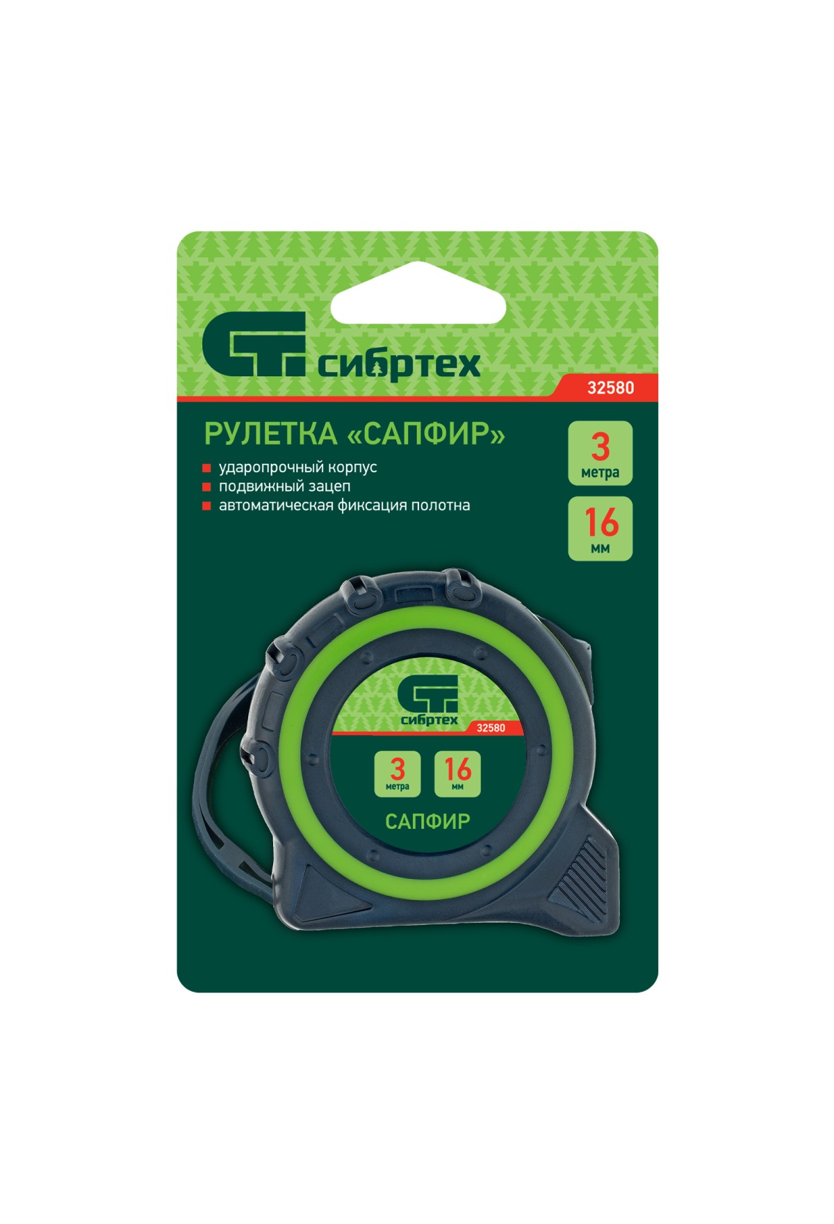 Технические характеристики Рулетка Сапфир,двухкомпонентный корпус,3 м х 16 мм Сибртех