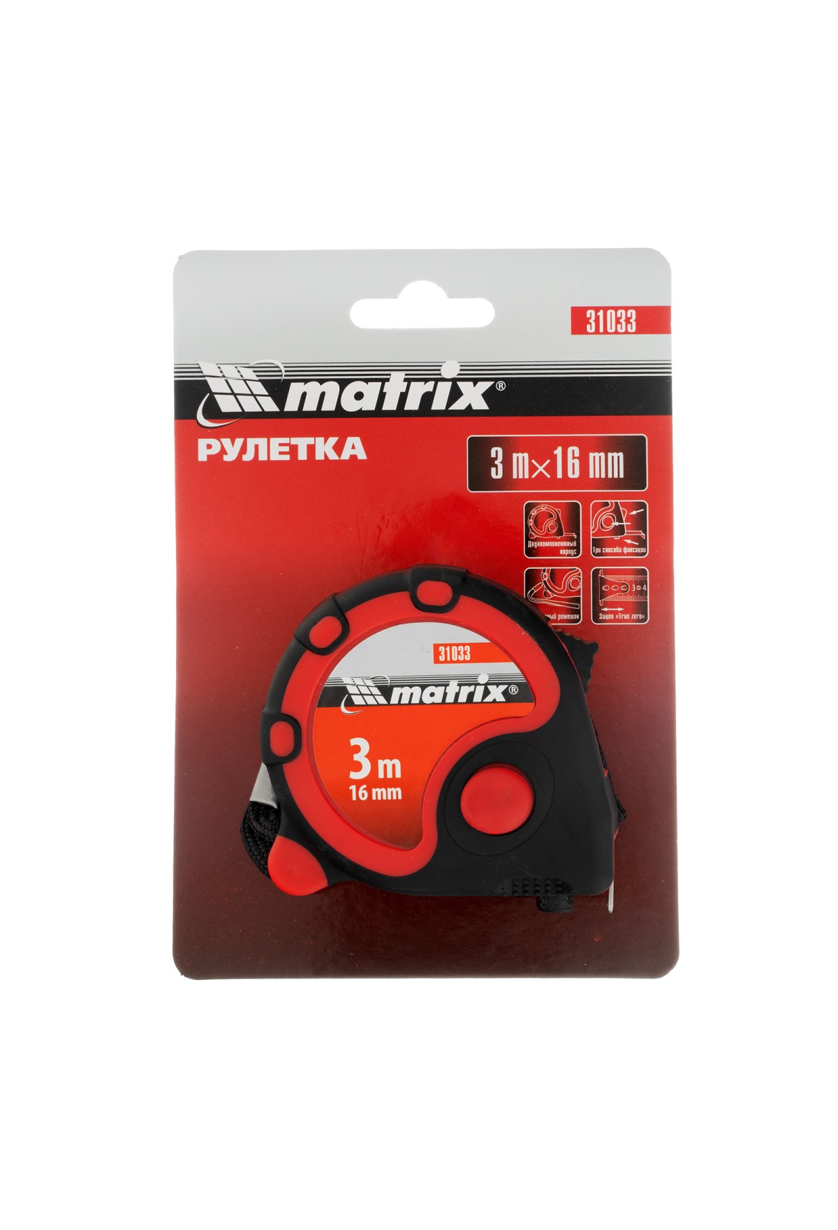 Рулетка Matrix Status 3 fixations 31033 в двухкомпонентном корпусе, с 3 способами фиксации ленты длиной 3 м и шириной 16 мм, предназначена для проведения измерений, имеет 2 класс точности и цену деления 1 мм. Механизм рулетки помещен в частично обрезиненный корпус из прочного пластика, что защищает инструмент от повреждений в результате случайных падений или ударов. Зацеп надежно прикреплен к измерительной ленте заклепками. Рулетка пригодится строителям, мастерам по ремонту, будет полезна и в быту.
