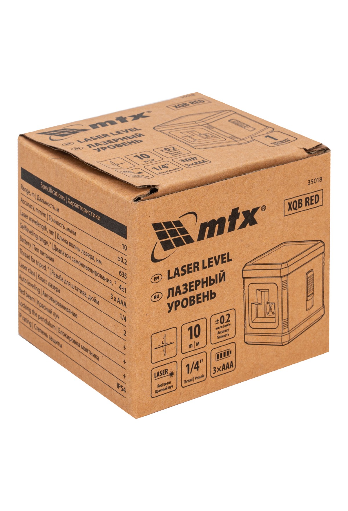 Лазерный уровень MTX XQB RED Basic SET 35018 с красным лучом, резьбой под штатив 1/4″, в комплекте с 3 батарейками ААА, проецирует на поверхность горизонтальную и вертикальную линии (крест) дальностью до 10 м. Незаменим при выполнении ремонтно-строительных работ в помещениях, подходит для бытового применения.