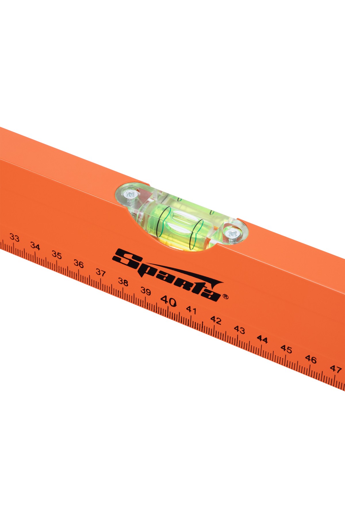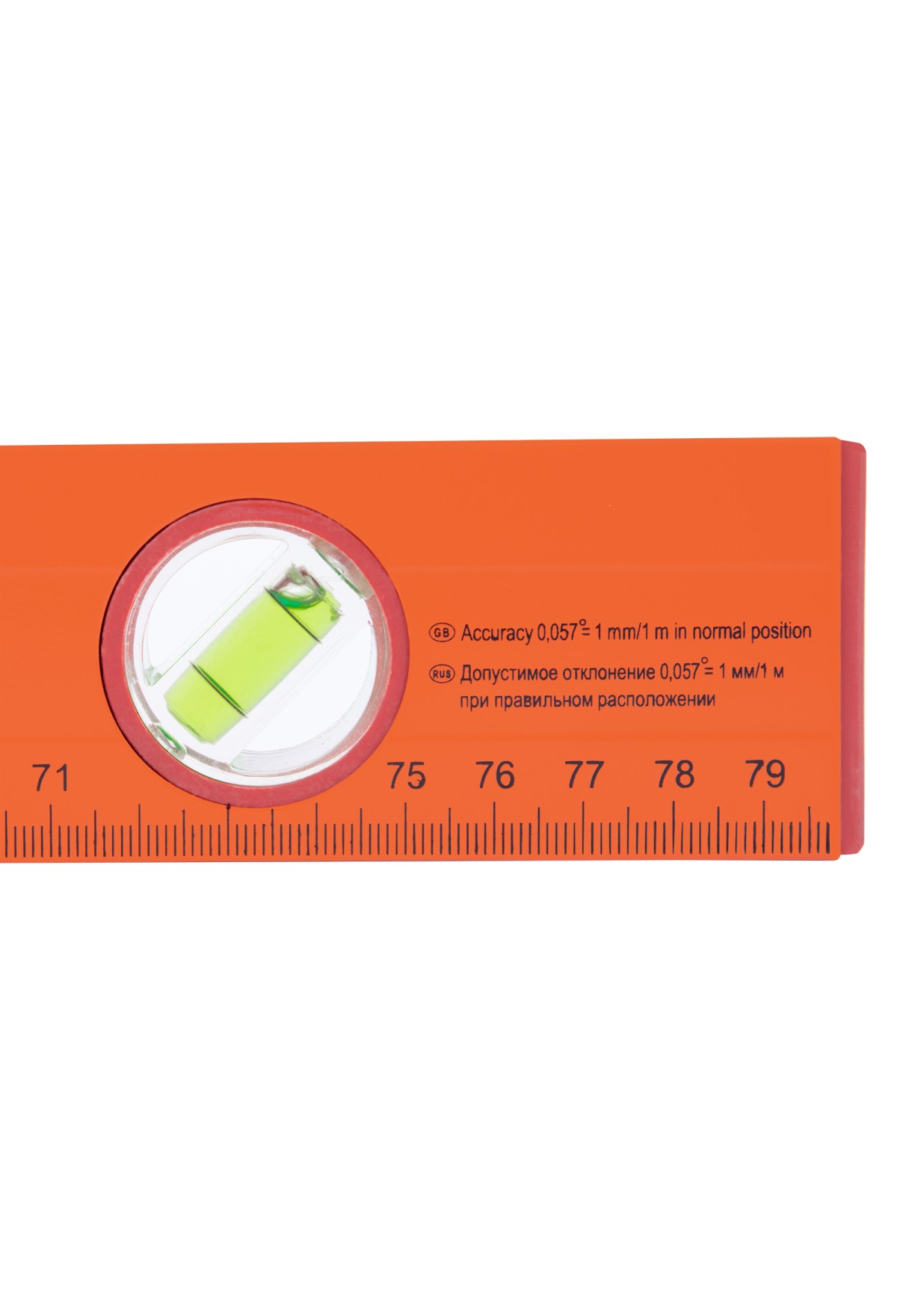 Алюминиевый уровень Sparta 330265 длиной 800 мм, желтого цвета, с 3 глазками и линейкой, будет полезен при проведении строительных, отделочных, облицовочных и других работ, требующих особой точности. Уровень с тремя глазками поможет определить отклонение от горизонтальной и вертикальной плоскости, выставить угол 45°, измерить предметы и т. д.