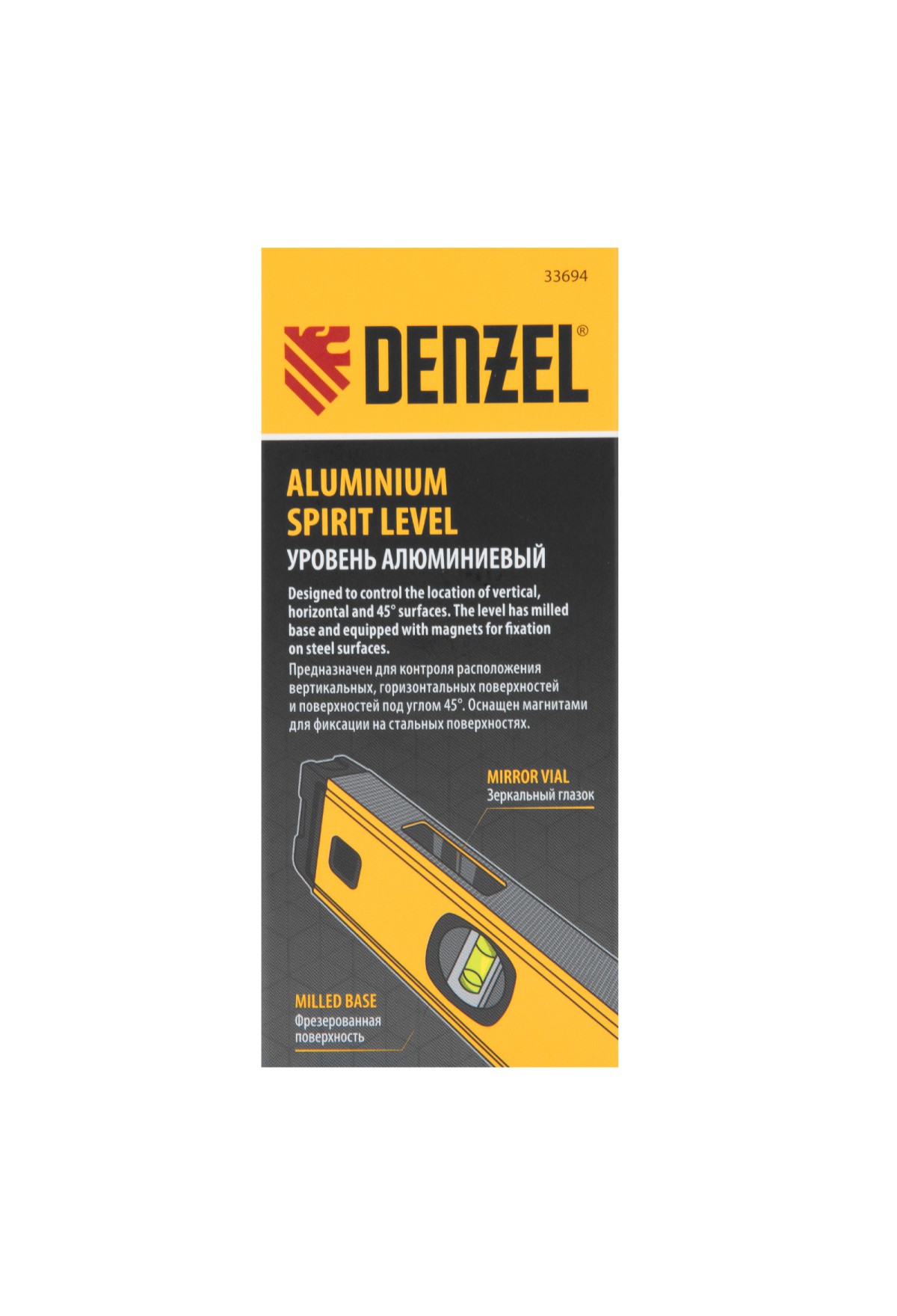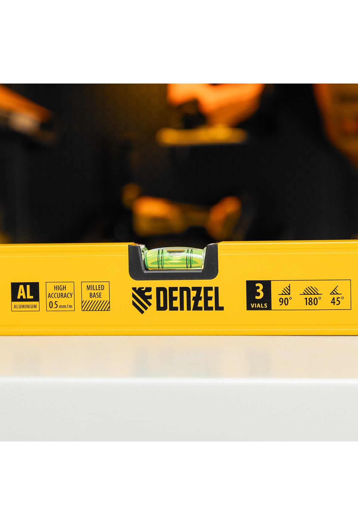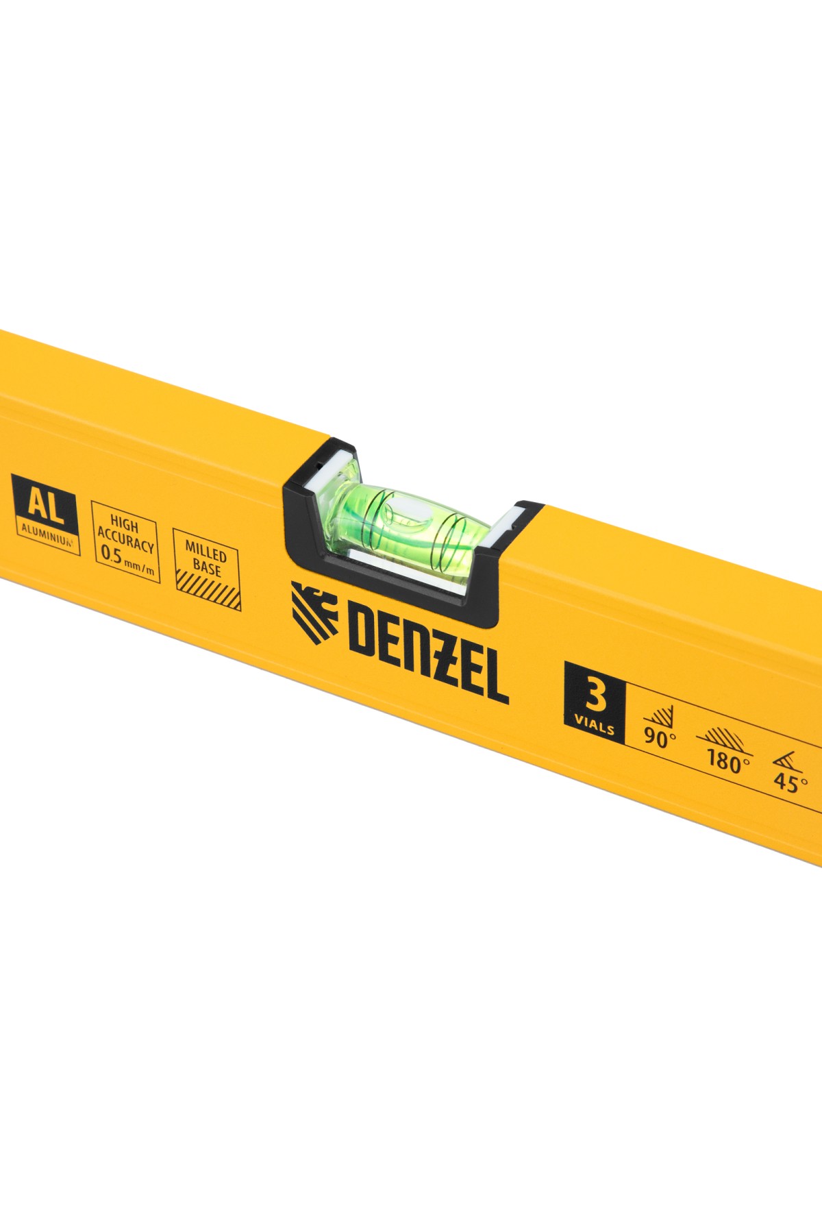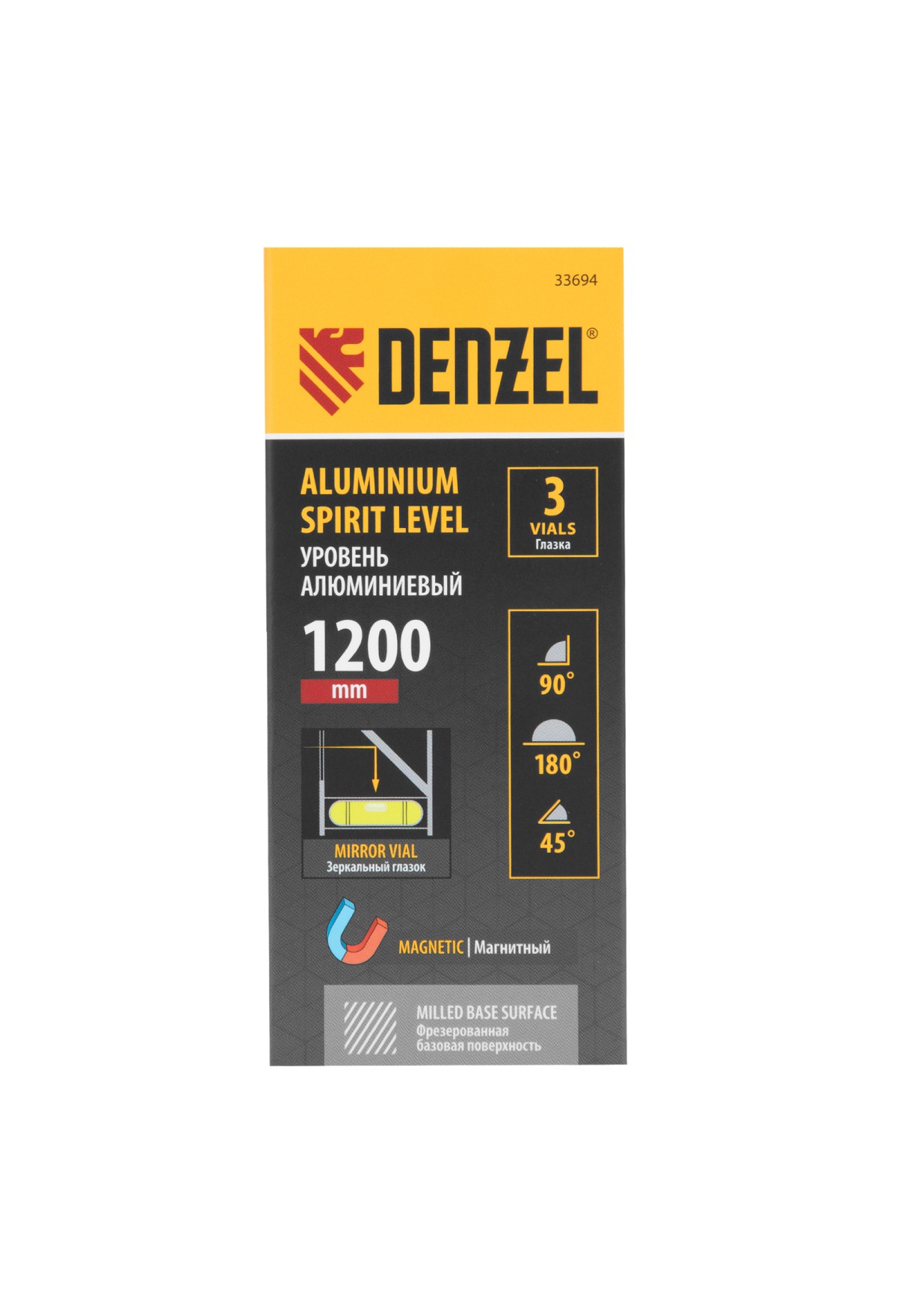 Алюминиевый фрезерованный уровень Denzel 33694 длиной 1200 мм, с магнитом и 3 глазками, из которых 1 зеркальный, предназначен для контроля отклонений от горизонтальной, вертикальной и поверхности под углом 45° с точностью 0,5 мм/м. 3 пузырьковые камеры 90°, 180° и 45° позволяют быстро проверить правильность разметки. Инструмент незаменим при проведении строительных, ремонтных, сантехнических работ.