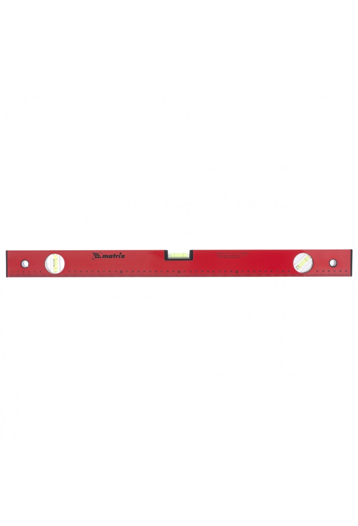 Технические характеристики Уровень алюминиевый, 600 мм, 3 глазка, красный, линейка Matrix
