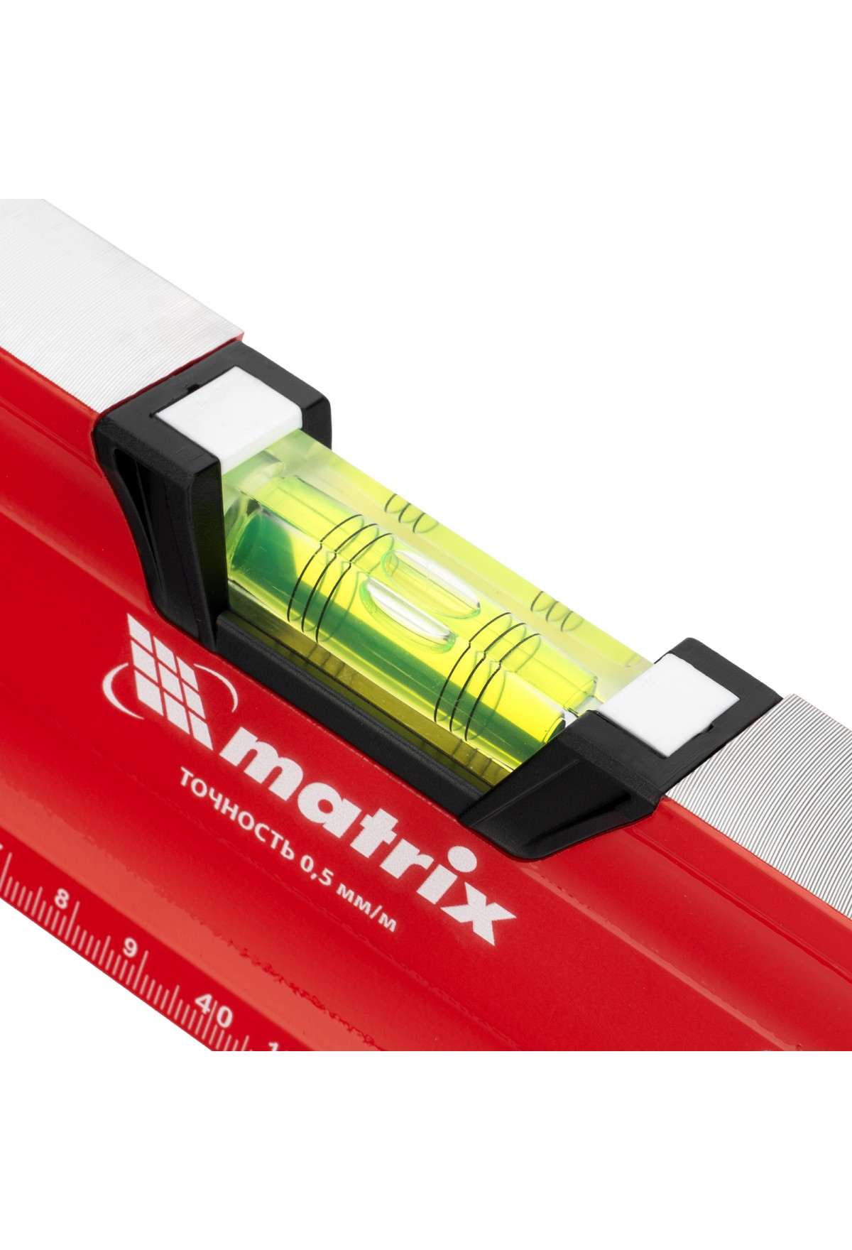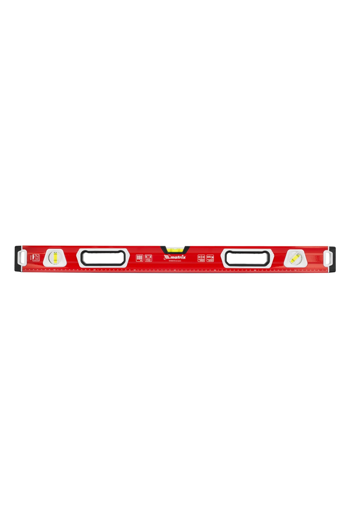 Уровень алюминиевый фрезерованный Matrix 34732 длиной 800 мм, с магнитной полосой и 2-компонентными рукоятками, 3 глазками и 1 зеркальным отражателем, — измерительный инструмент для контроля отклонений поверхностей от горизонтали, вертикали и угла 45°. Используется для выполнения работ, требующих высокой точности.