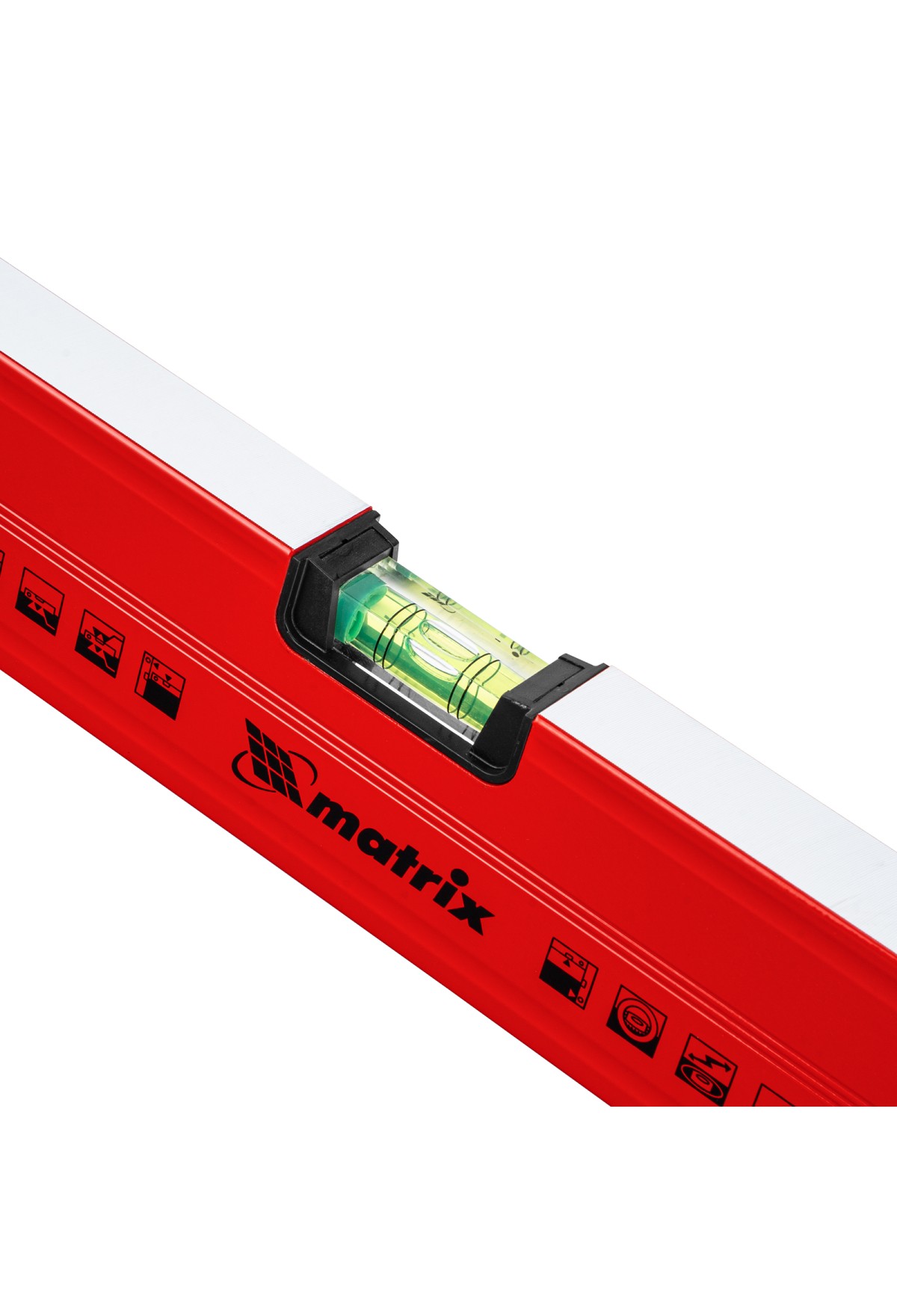 Уровень алюминиевый магнитный Matrix 34720 усиленной конструкции, длиной 2000 мм, с фрезерованной рабочей поверхностью, оснащен 3 глазками и одним зеркальным отражателем. Позволяет выявить отклонения от вертикали, горизонтали и угла 45°. Встроенный зеркальный глазок облегчает считывание показаний.