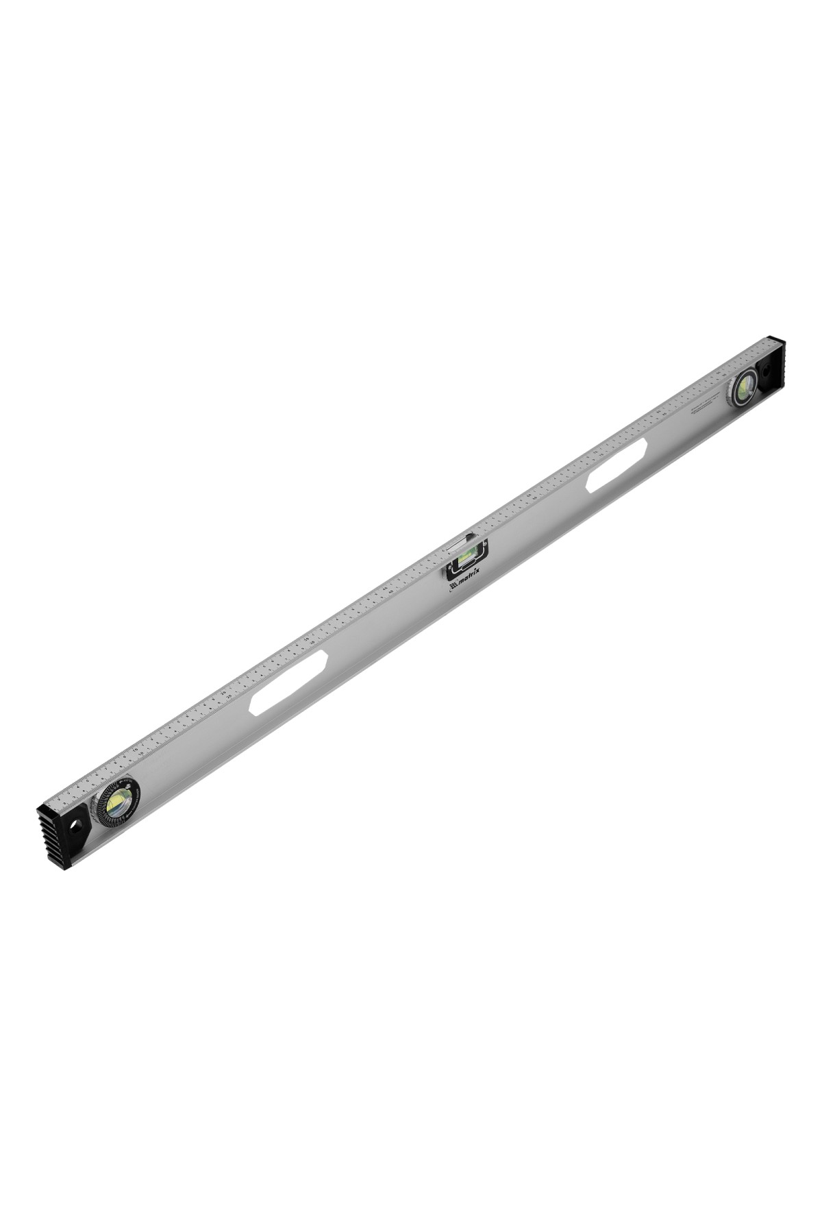 Алюминиевый уровень Matrix «Рельс» 34029 длиной 1000 мм имеет 3 глазка: 2 для проверки отклонений от заданной вертикали и горизонтали и 1 поворотный для проверки наклонных поверхностей.