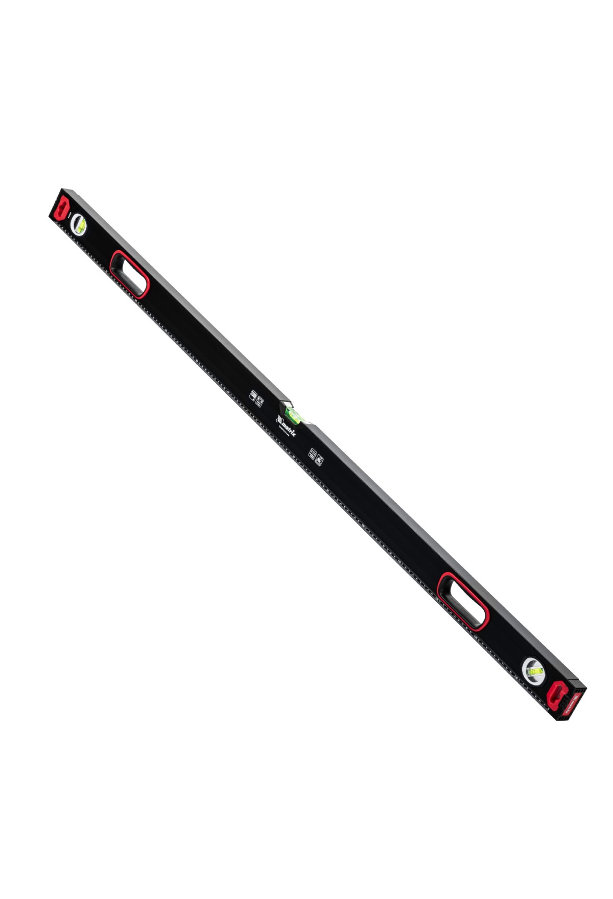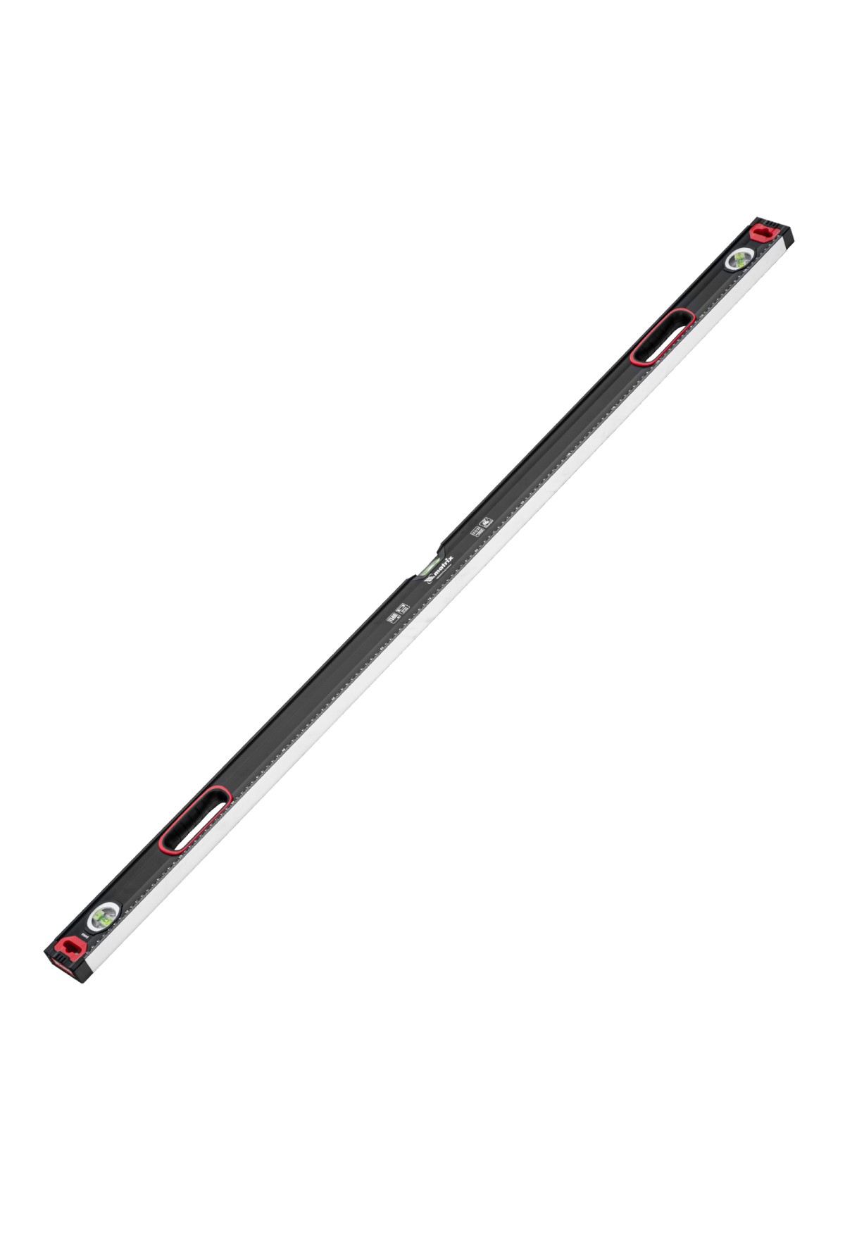 Уровень алюминиевый усиленный Matrix 34365 длиной 1500 мм, фрезерованный, с 3 глазками и двухкомпонентными рукоятками, служит для проверки горизонтальных, вертикальных поверхностей, а также точности угла 45°. Пригодится частному мастеру и профессионалу для проведения строительных, ремонтных и монтажных работ.