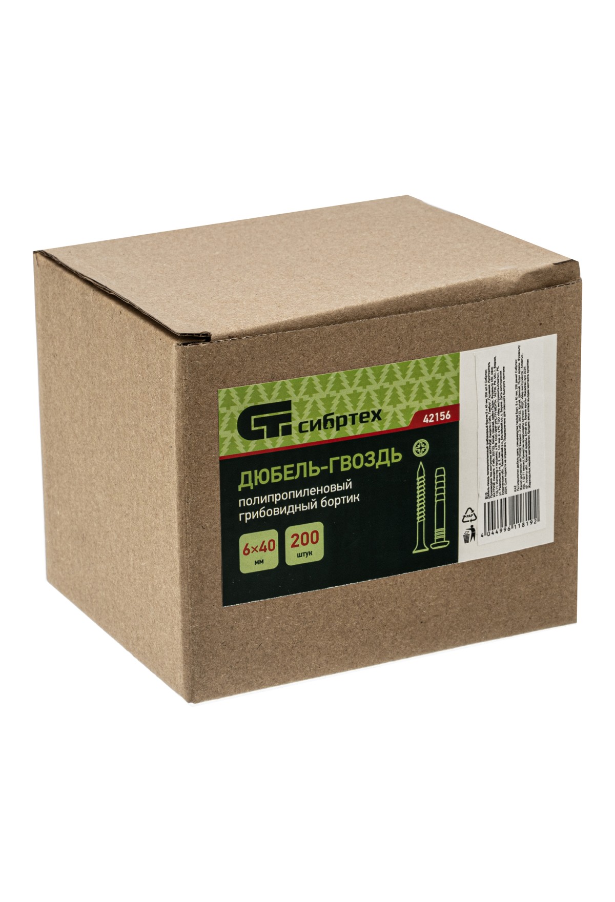 Полипропиленовый дюбель-гвоздь Сибртех 42156 с грибовидным бортиком, размером 6 х 40 мм, 200 шт. в упаковке, используется при проведении ремонтных и отделочных работ. Позволяет крепить плинтусы, рейки, рамки, зажимы, монтажные короба, держатели для труб. Грибовидный бортик плотно прижимает деталь к основанию. Гвоздевой дюбель применяется в профессиональной сфере, подходит также для самостоятельного обустройства квартиры или дачи.
