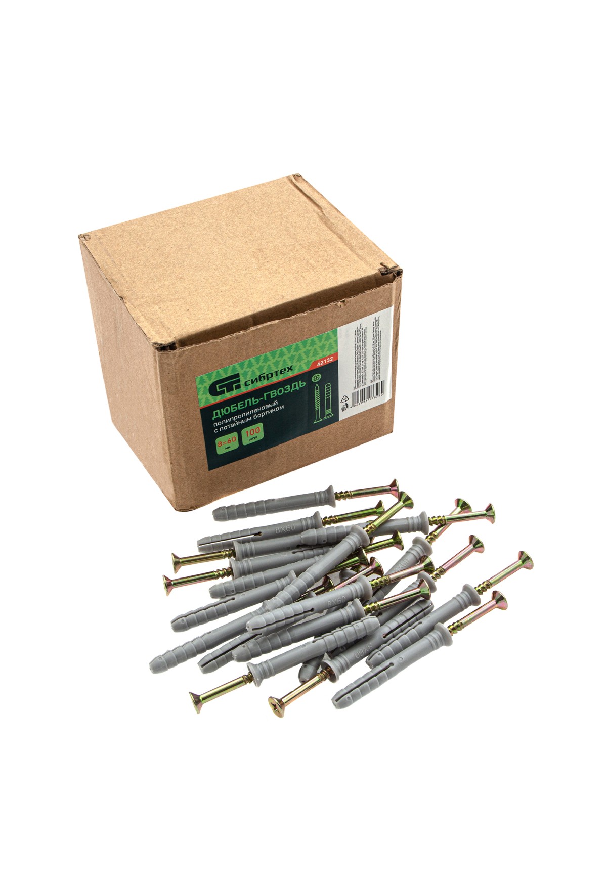 Полипропиленовый дюбель-гвоздь Сибртех 42132 с потайным бортиком, размером 8 х 60 мм, 100 шт. в упаковке, предназначен для закрепления деталей и конструкций на основаниях из бетона, кирпича или камня. Потайной бортик дюбеля обеспечивает максимальный контакт крепежа с прикрепляемым материалом. В комплект поставки входят саморезы со шляпкой типоразмера PZ2. Дюбель-гвоздь применяется при проведении строительных и ремонтных работ, прокладке сетей, а также для решения бытовых задач.