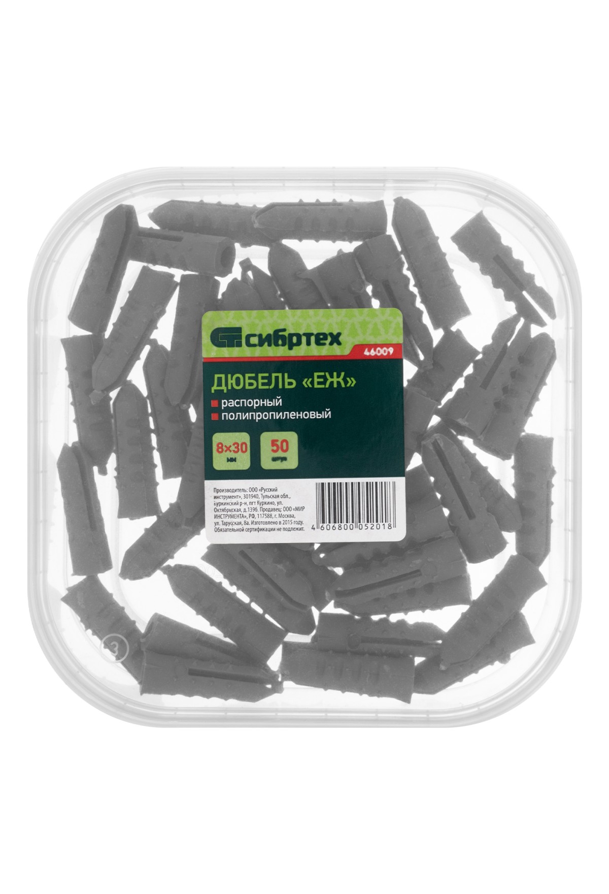 Технические характеристики Дюбель, 8 x 30 мм, "Еж" распорный полипропиленовый, 50 шт Сибртех