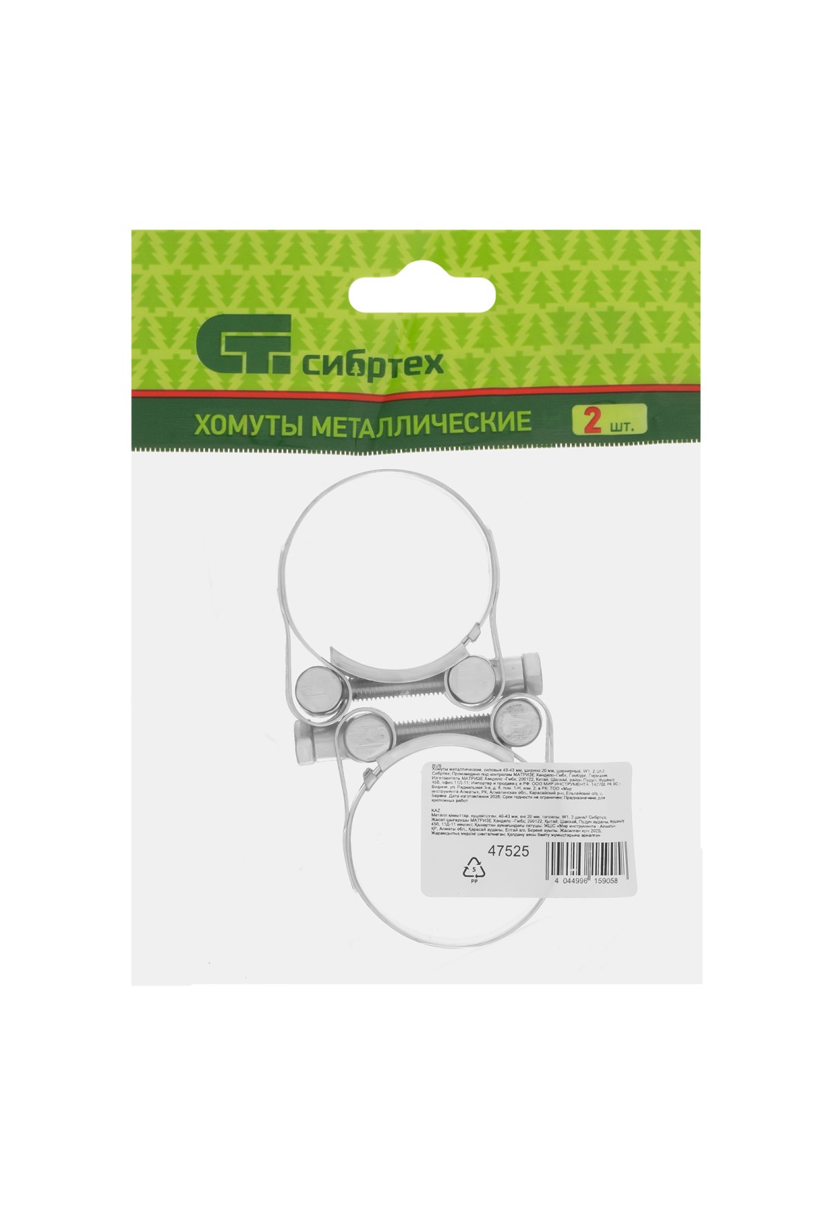 Технические характеристики Хомуты металлические, силовые 40-43 мм, ширина 20 мм, шарнирный, W1, 2 шт Сибртех