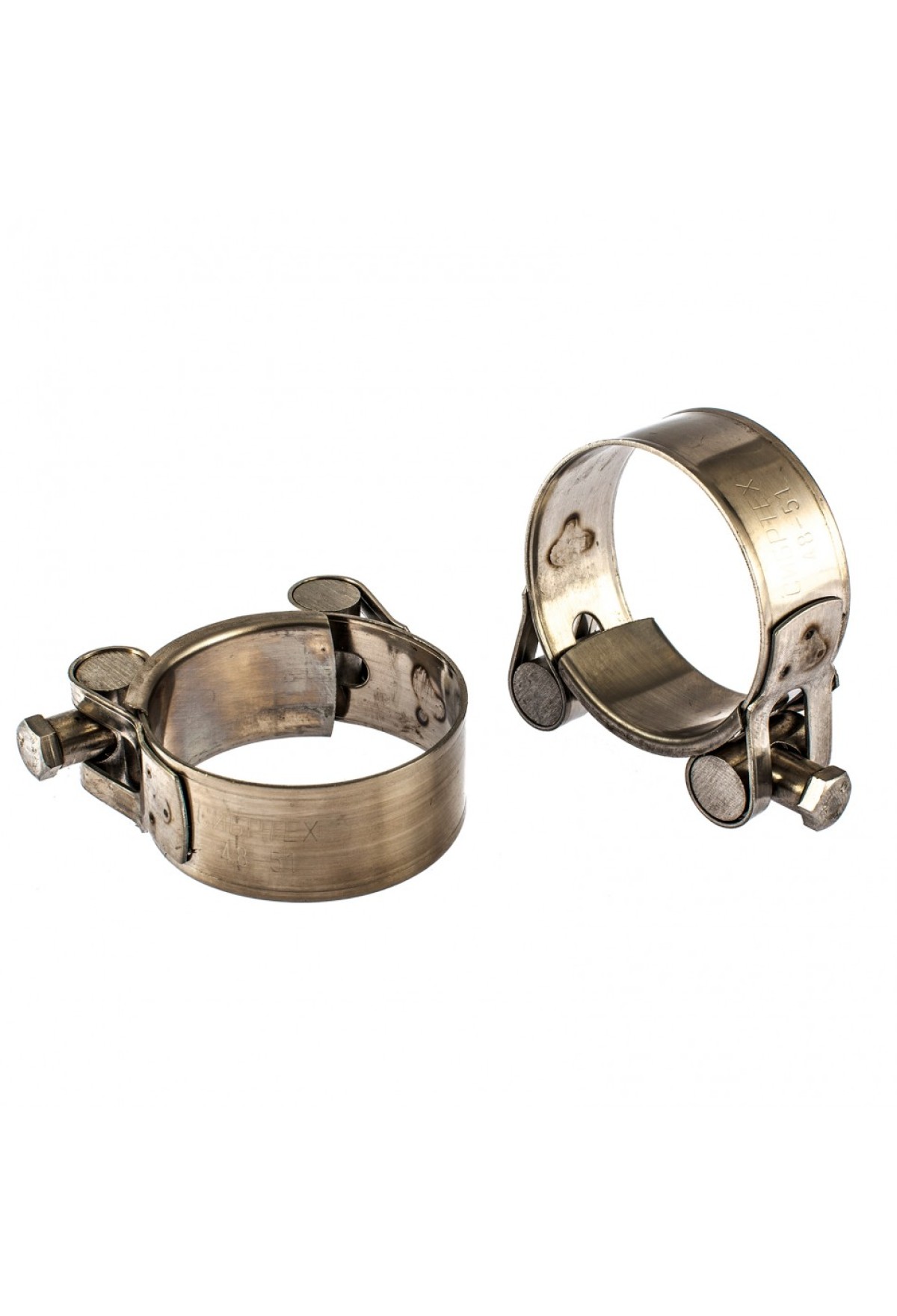 • Хомуты металлические, силовые 48-51 мм, ширина 22 мм, шарнирный, W4, 2 шт Сибртех