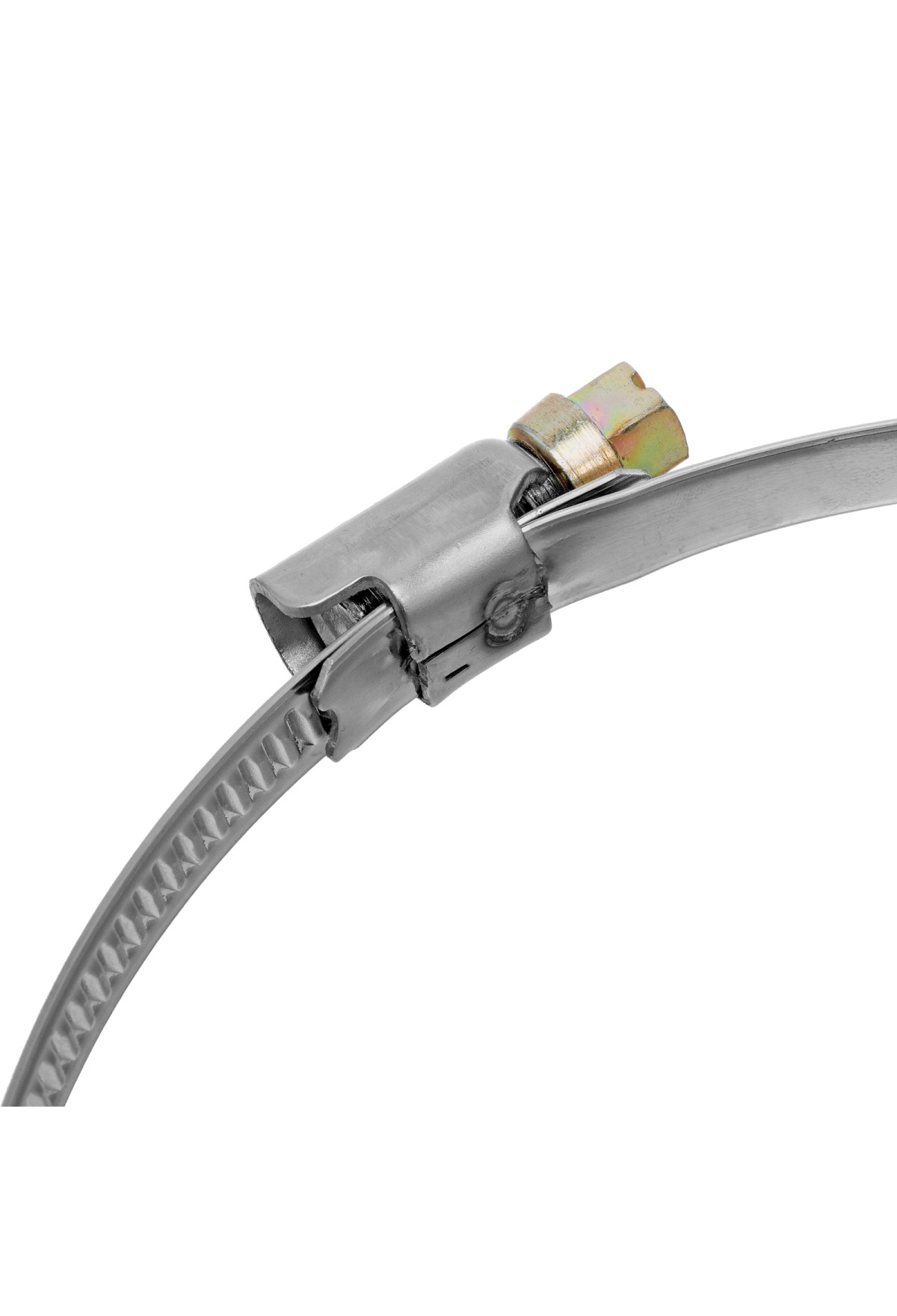 - Прочность и долговечность — хомуты из прочной нержавеющей стали выдерживают значительные механические нагрузки и устойчивы к коррозии.