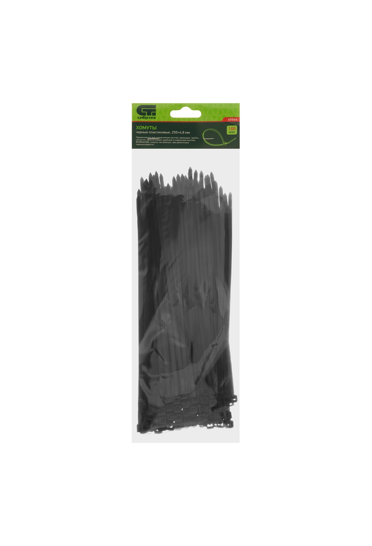 Черные пластиковые хомуты Сибртех 45564, 250 х 4,8 мм, 100 шт. в упаковке, используются для стяжки кабелей, закрепления трубок, шлангов, рекламных конструкций, а также для упаковки различных предметов. Пригодятся во время прокладки электрических и локальных вычислительных сетей, ремонта компьютерной техники, оформлении торговых стендов, комплектовании товара, будут также полезны дома, на даче и в гараже.