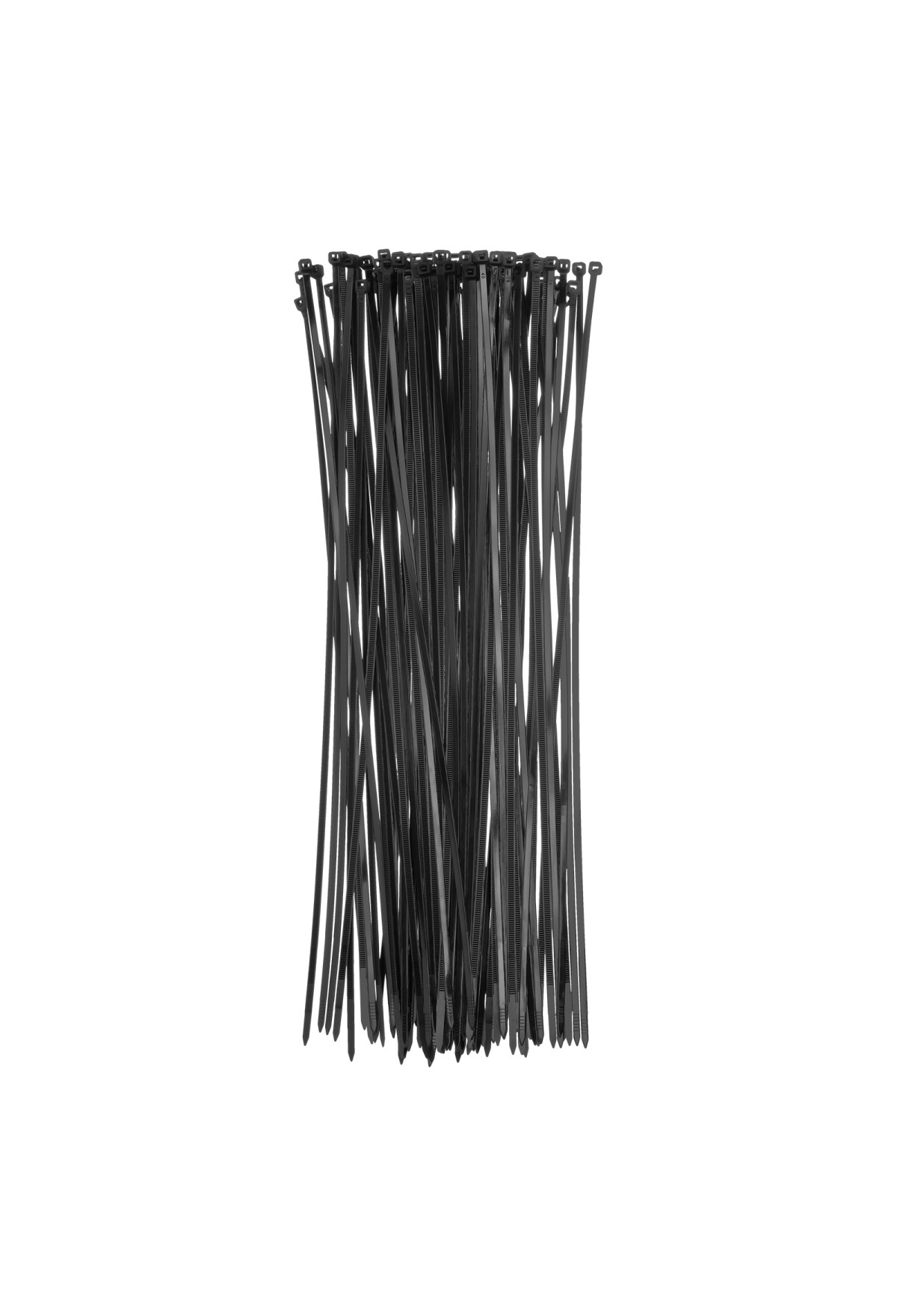 Черные пластиковые хомуты Сибртех 45562, 370 х 3,6 мм, 100 шт. в упаковке, используются для стяжки кабелей, закрепления трубок, шлангов, рекламных конструкций, а также для упаковки различных предметов. Пригодятся во время прокладки электрических и локальных вычислительных сетей, ремонта компьютерной техники, оформлении торговых стендов, комплектовании товара, будут также полезны дома, на даче и в гараже.