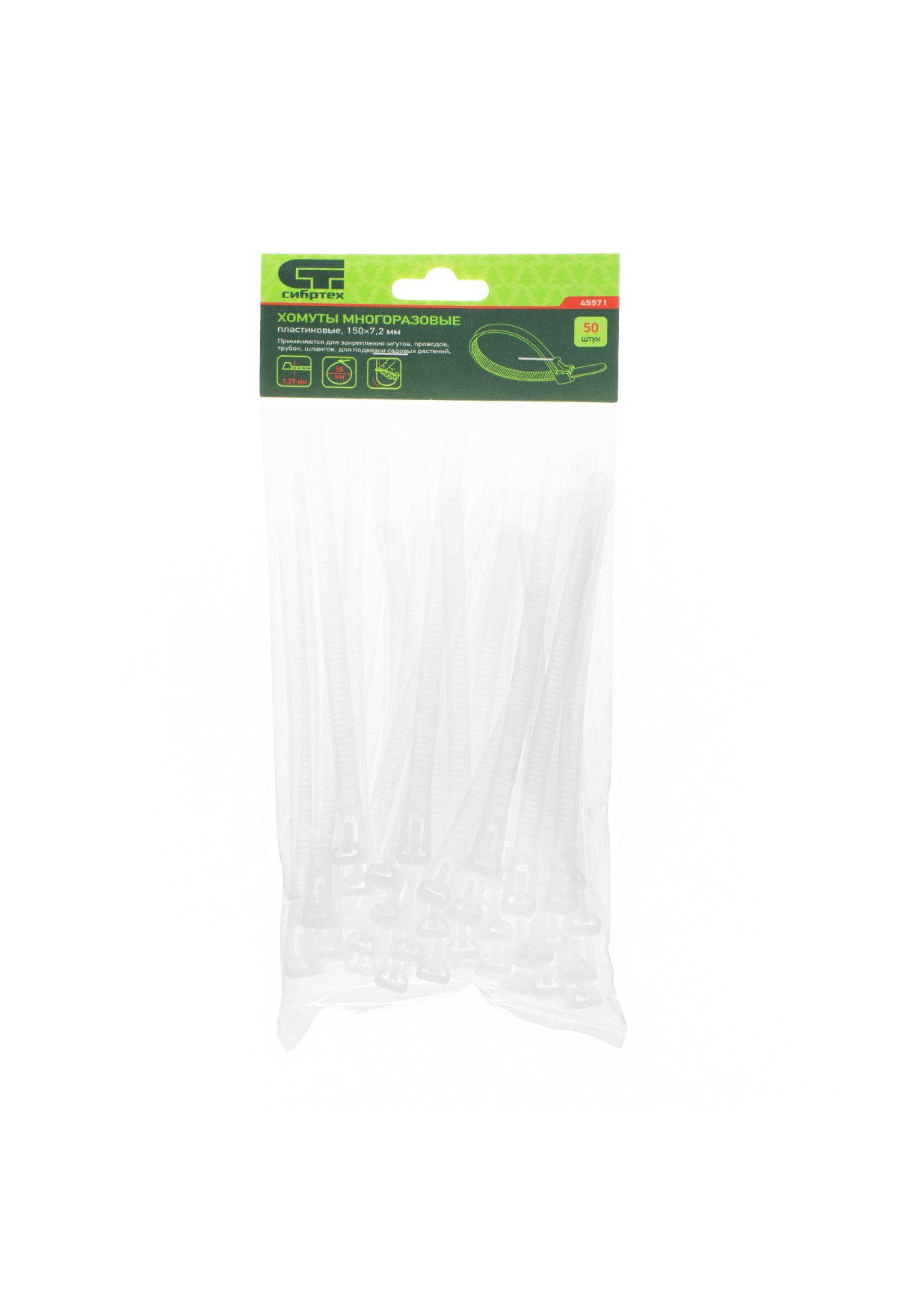 Пластиковые многоразовые хомуты Сибртех 45571 размером 150 х 7,2 мм, 50 шт. в упаковке, — приспособления для стяжки кабелей, шлангов или трубок. Могут применяться для подвязки растений или упаковки предметов. Белые пластиковые стяжки пригодятся во время выполнения электромонтажных работ, ремонта техники, будут полезны в промышленности, торговле, а также в быту.