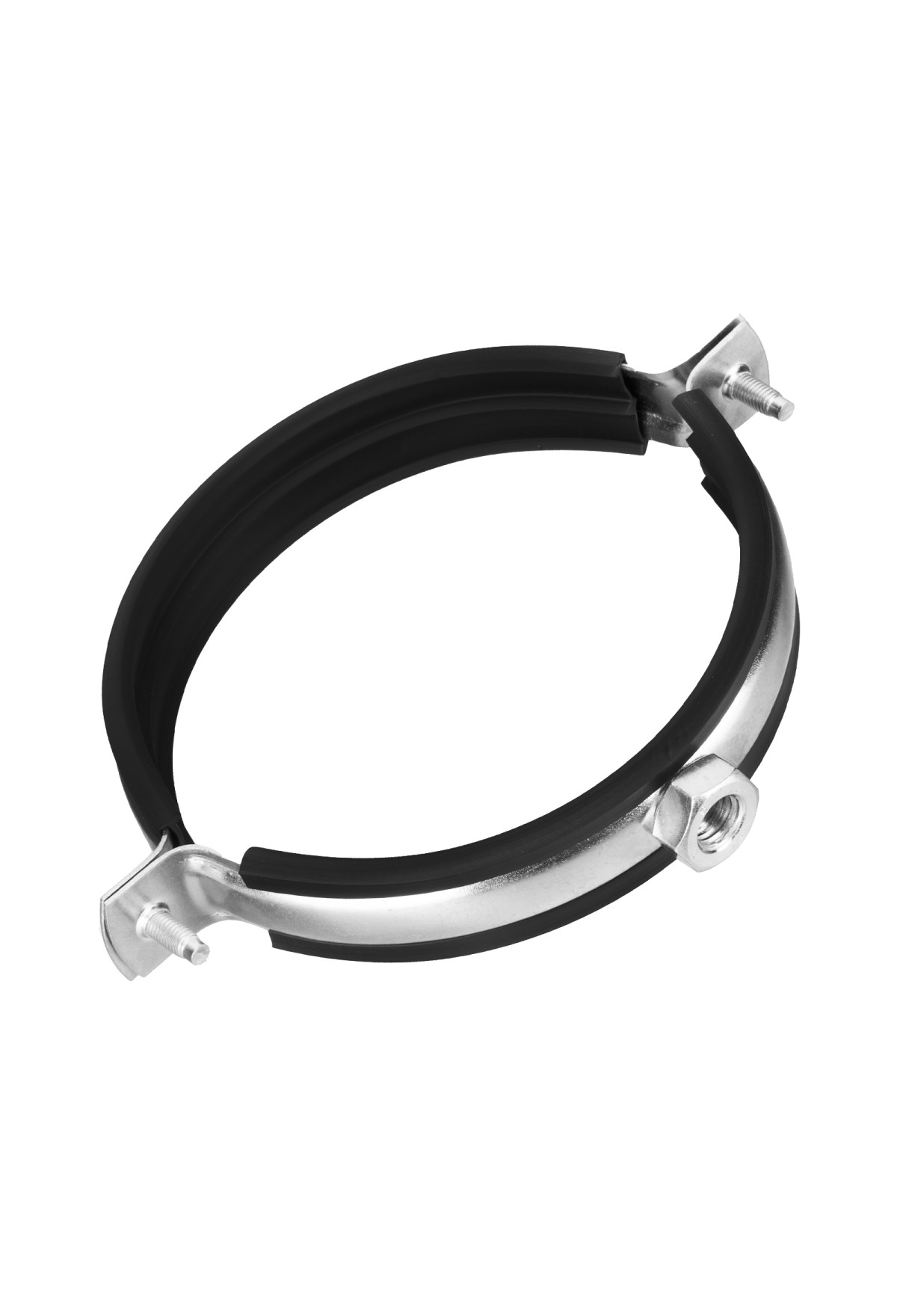 • Хомут для труб состоит из двух частей соединенные винтами, имеет резиновую прокладку для звукоизоляции и виброизоляции трубы, которая изготавливается из прочной резины.
