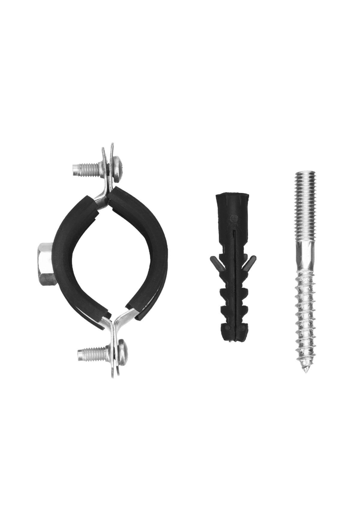 • Хомут сантехнический для труб 32-36 (1") с резиновым уплотнением, шпилькой и дюбелем, 1 шт, Сибртех