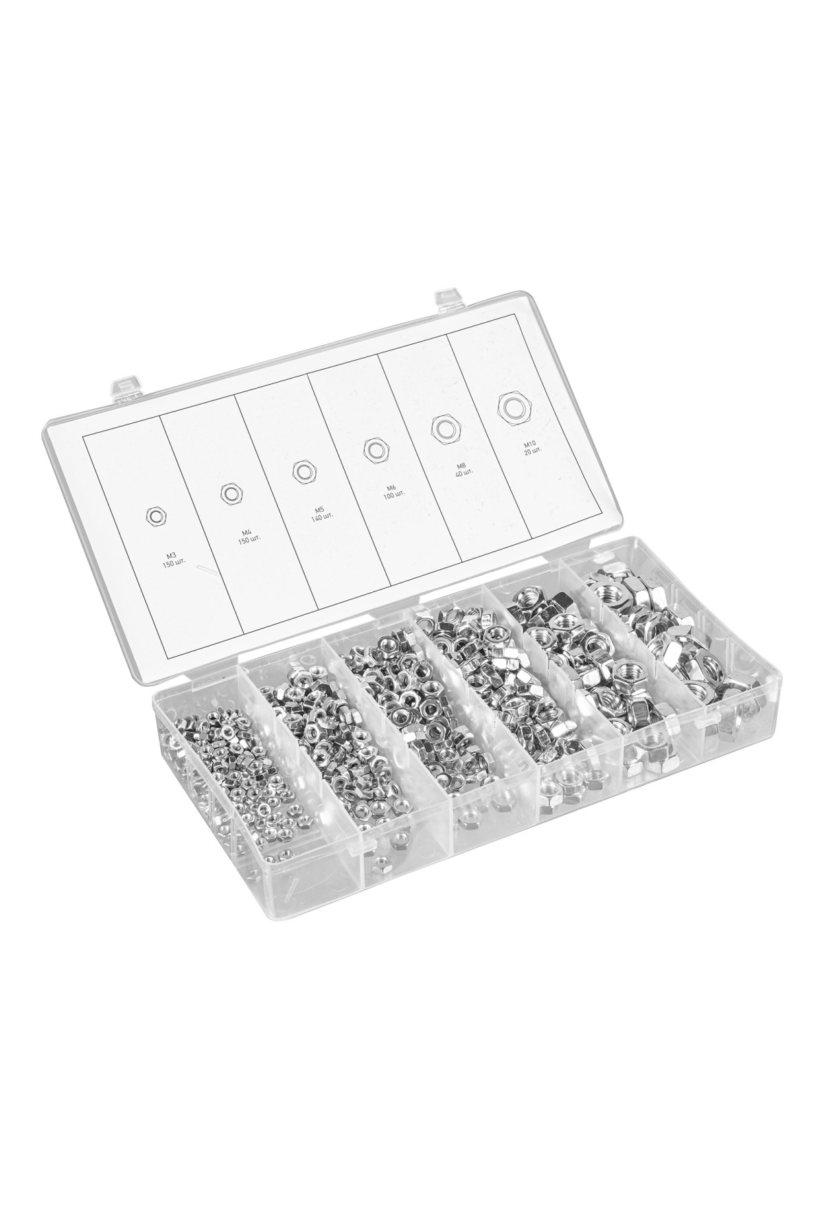 Комплектация | Пластиковый кейс - 1 штГайки: М3 - 150 штМ4 - 150 штМ5 - 140 штМ6 - 100 штМ8 - 40 штМ10 -20 шт |