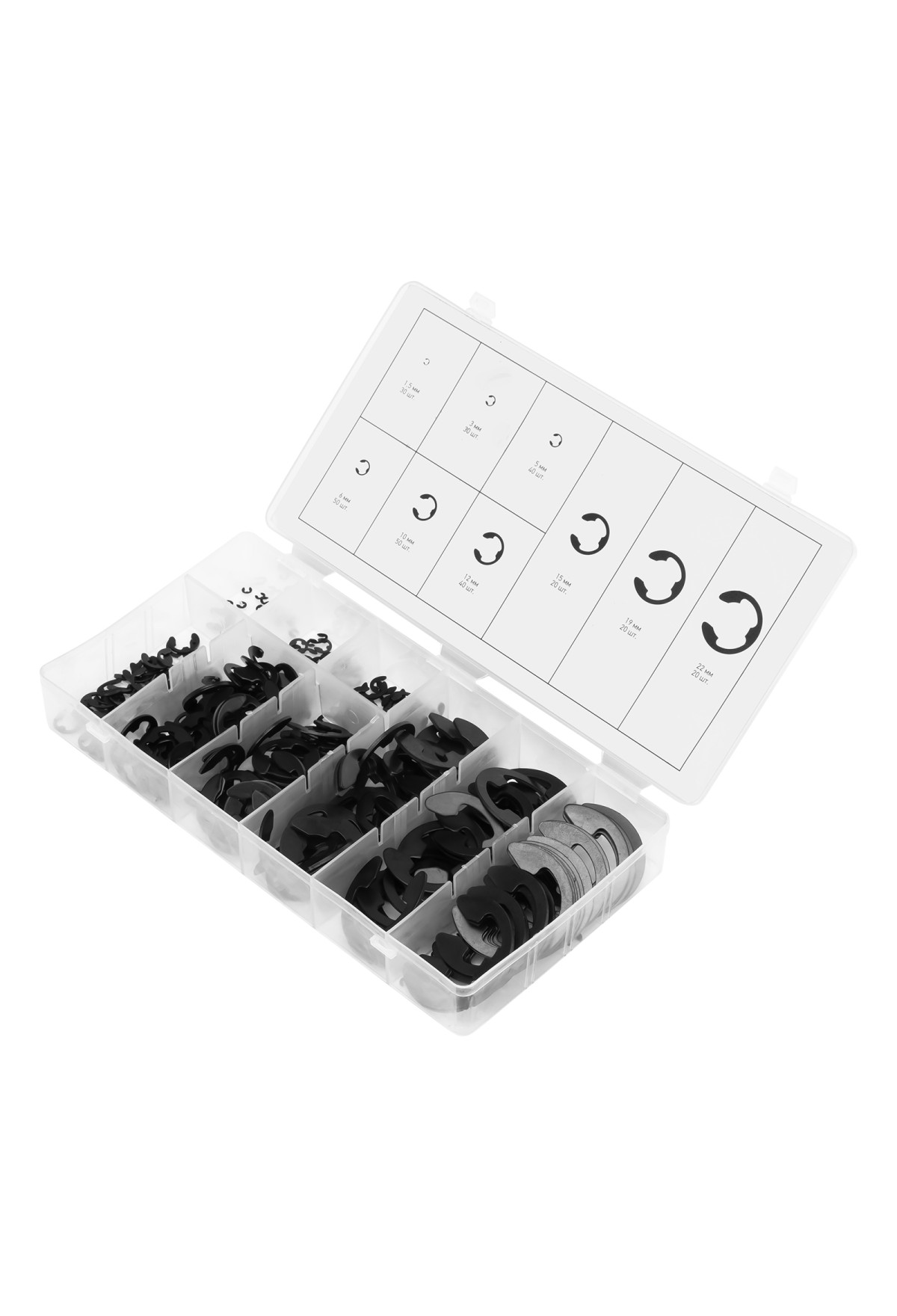 Комплектация Пластиковый кейс- 1 штСтопорные кольца: 1,5 мм - 30 шт3 мм - 30 шт5 мм - 40 шт6 мм - 50 шт10 мм - 50 шт12 мм - 40 шт15 мм - 20 шт19 мм - 20 шт22 мм - 20 шт