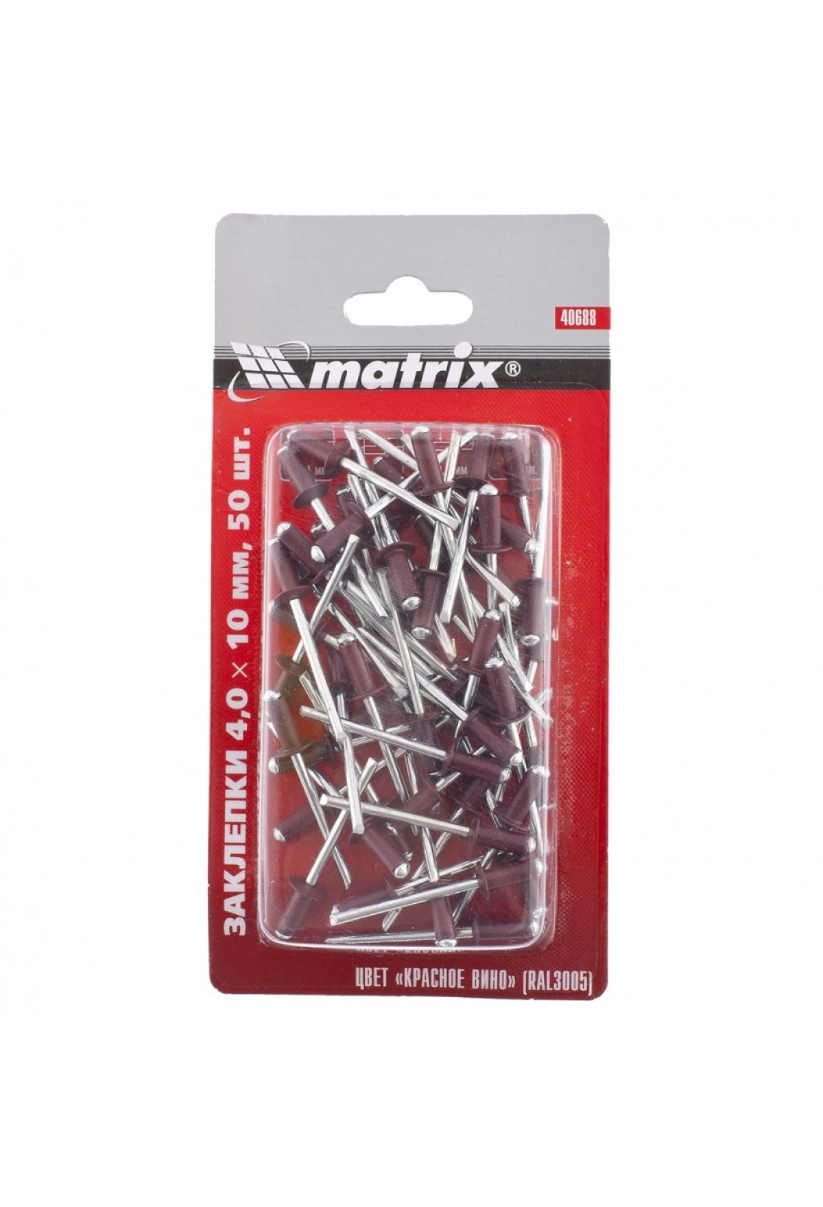 • Заклепки 4.0 х 10 мм RAL 3005, красное вино, 50 шт Matrix