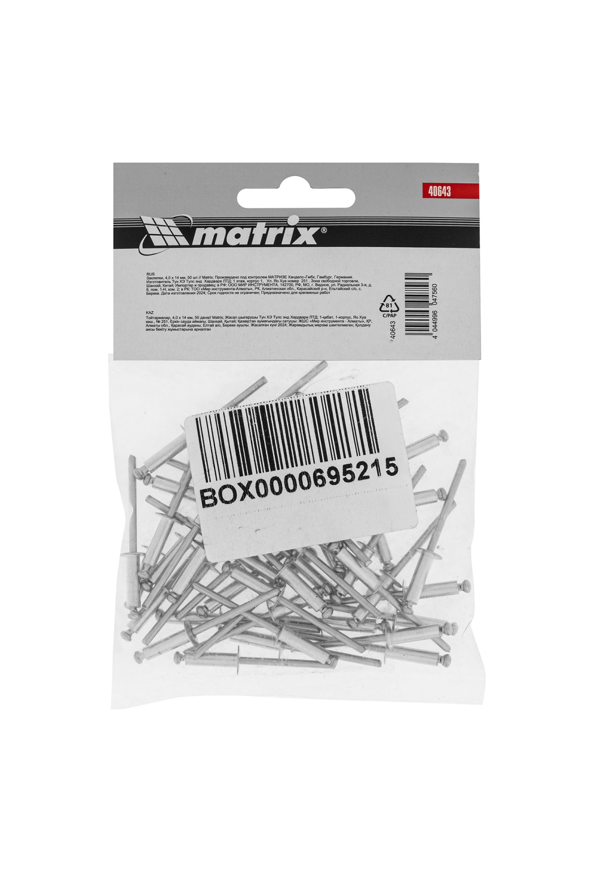 Заклепки, 4.0 х 14 мм, 50 шт. Matrix