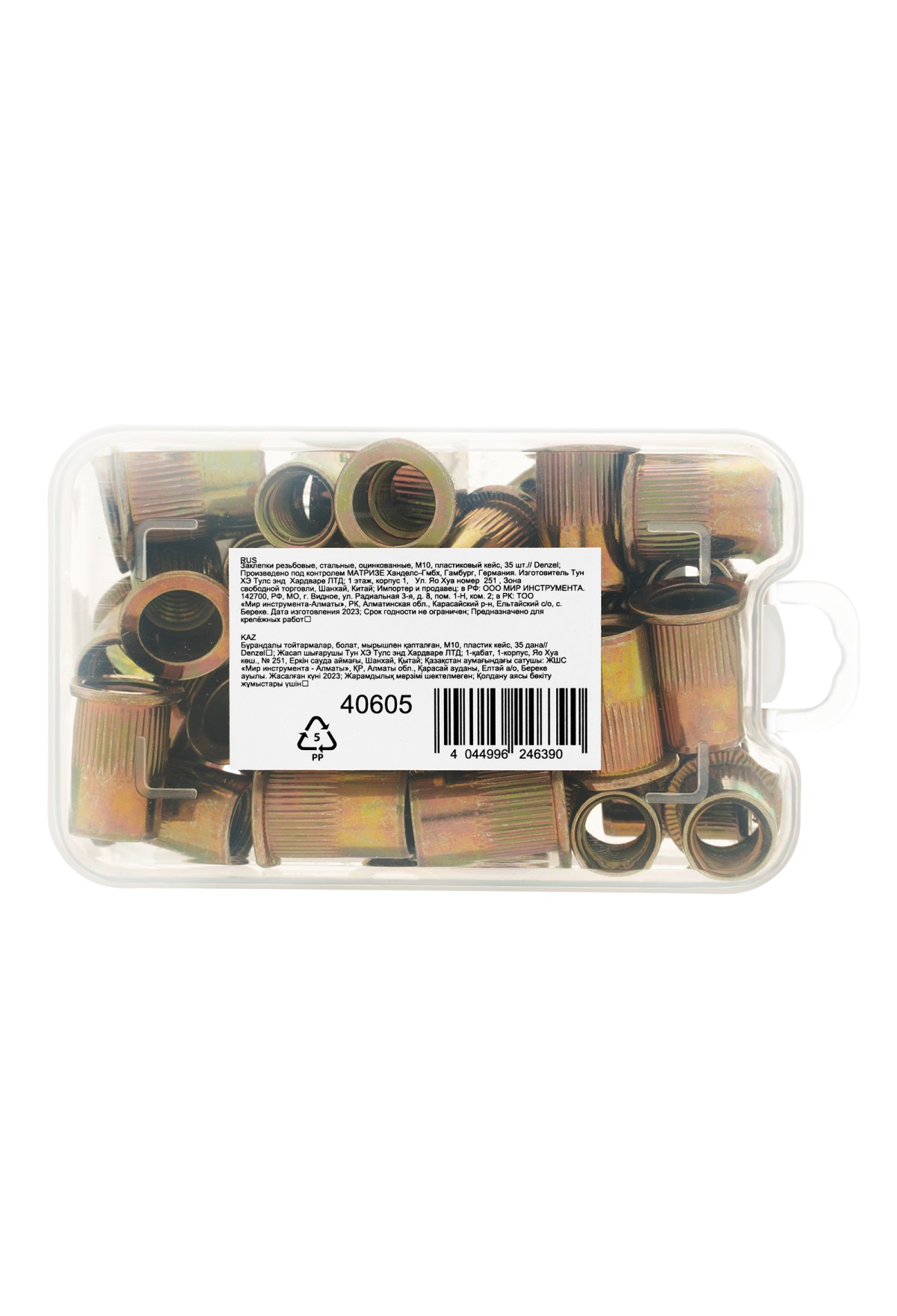 Технические характеристики Заклепки резьбовые, стальные, оцинкованные, М10, пластиковый кейс, 35 шт. Denzel
