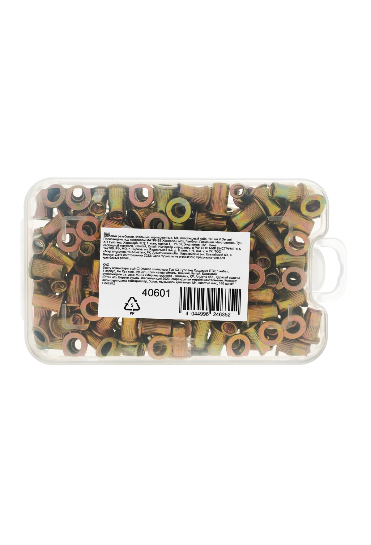 | Комплектация | Заклепки резьбовые - 140 штПластиковый кейс - 1 шт |