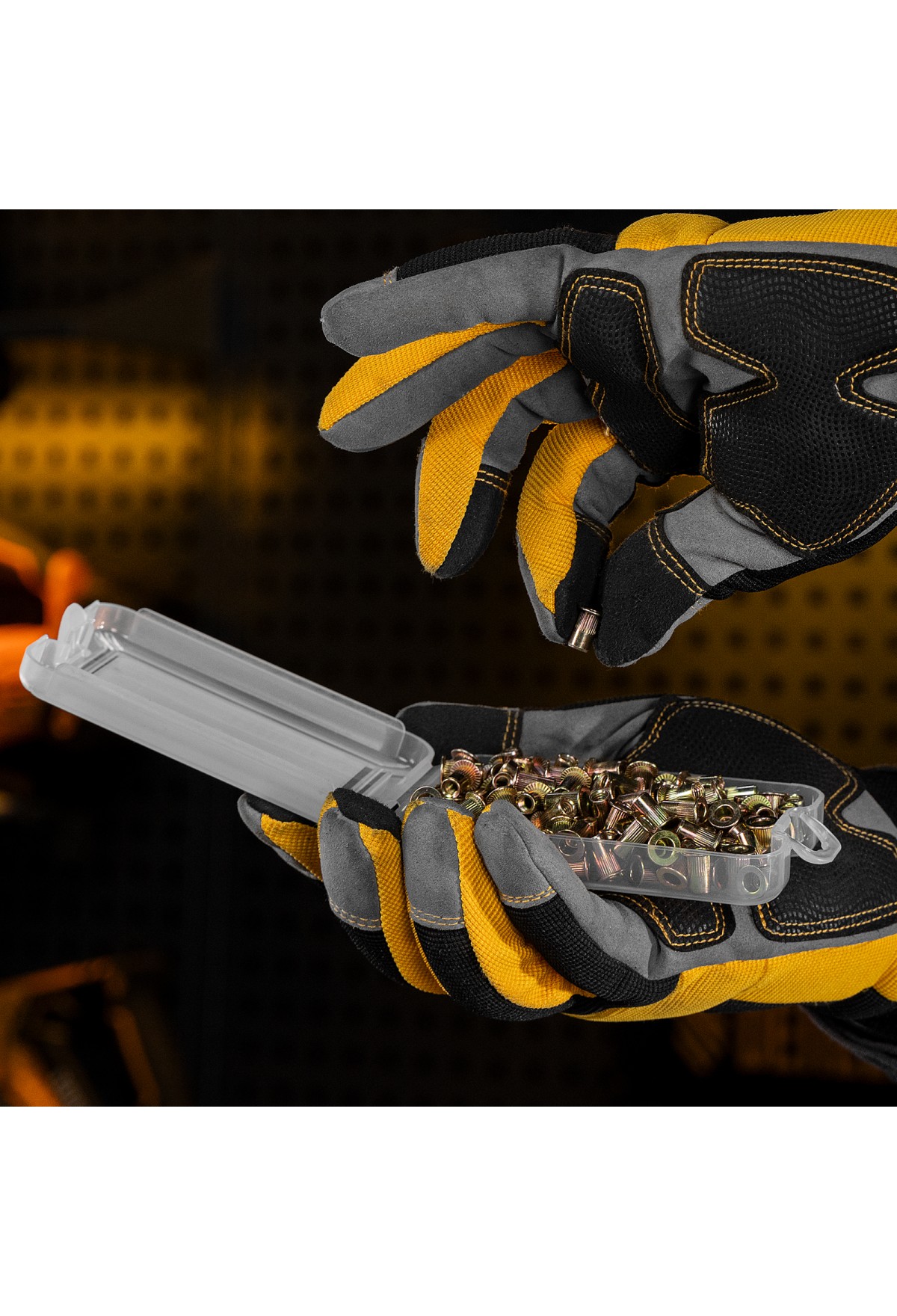 - Удобное хранение и транспортировка — заклепки поставляются в прочном пластиковом кейсе с защелкой.