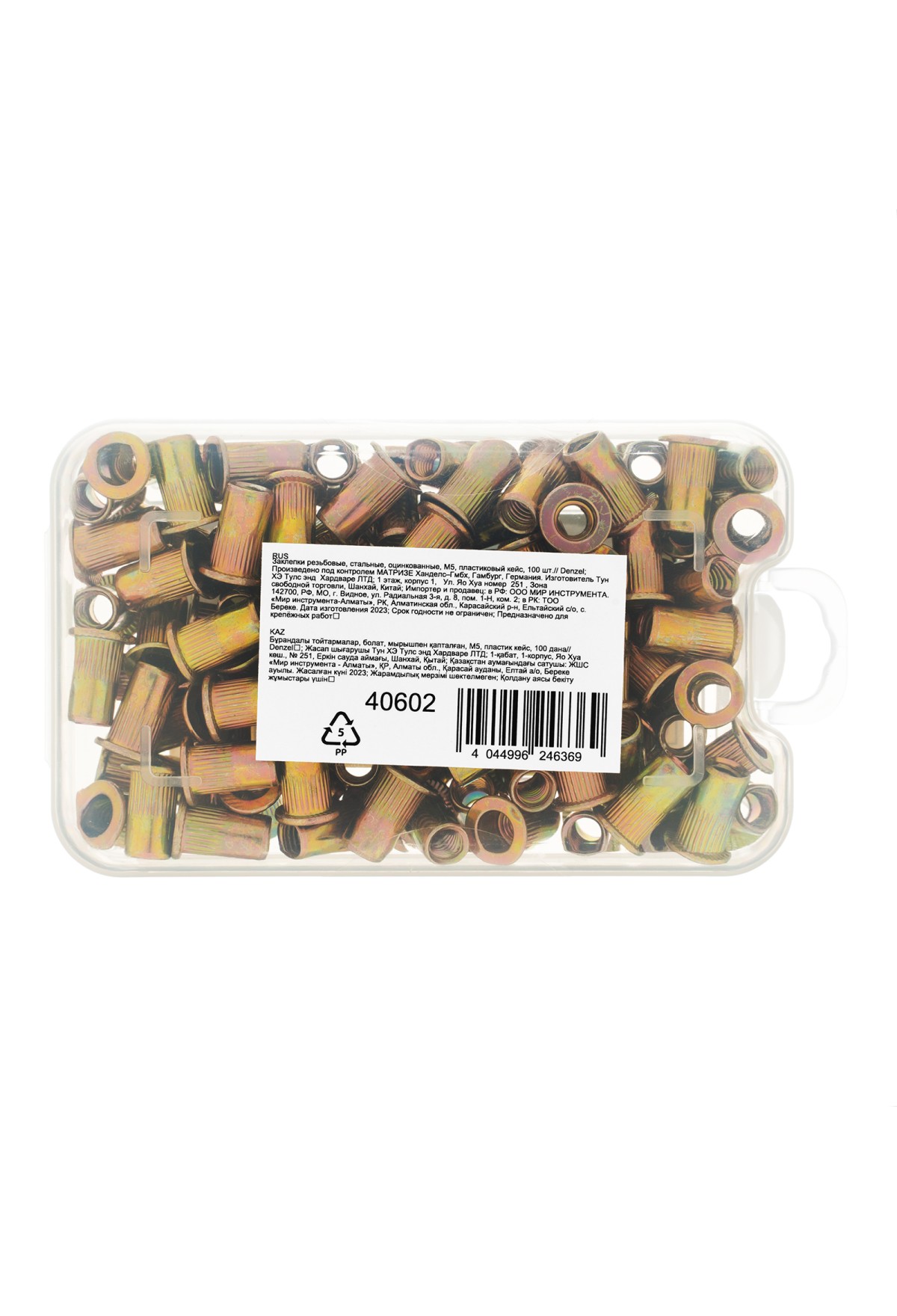 | Комплектация | Заклепки резьбовые - 100 штПластиковый кейс - 1 шт |