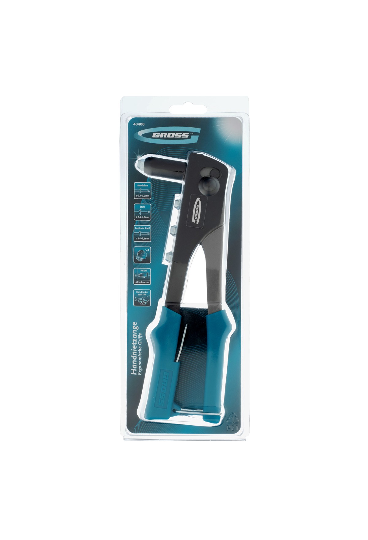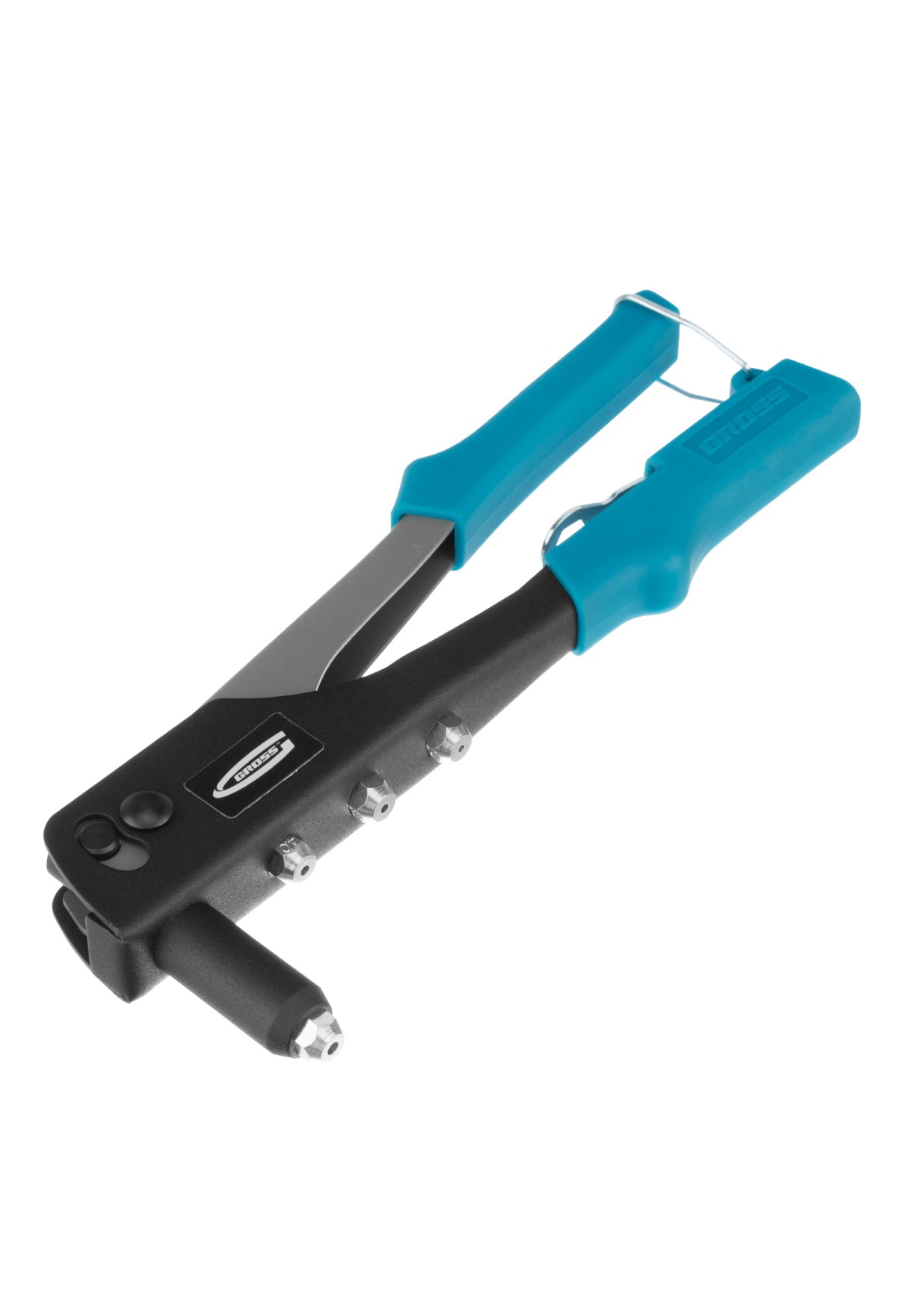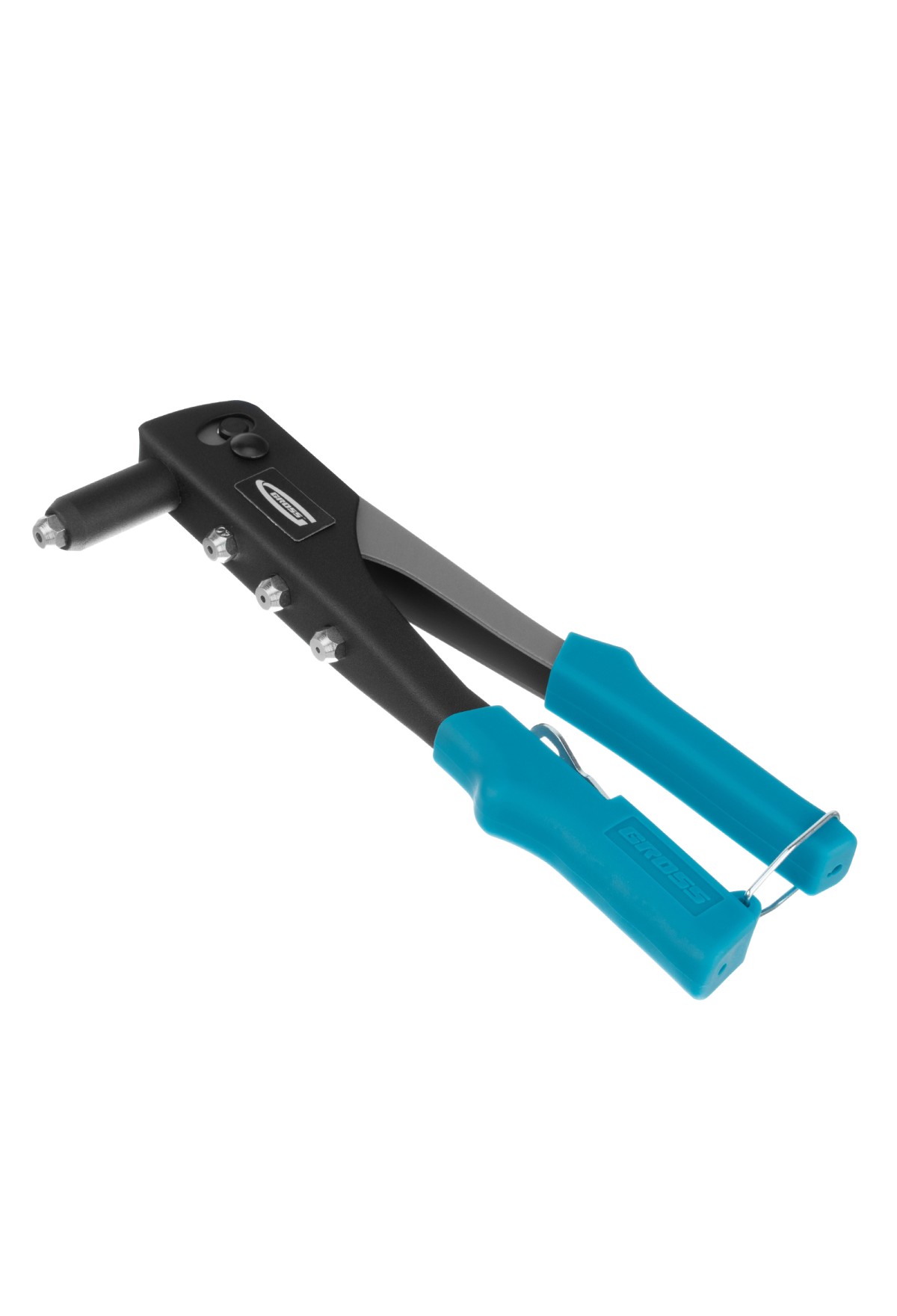 Заклёпочник Gross 40400, 258 мм, используется для соединения плоских заготовок, металлических профилей и тонкостенных конструкций. Совместим с вытяжными заклёпками типоразмера 2,4-4,8 мм из стали, алюминия и нержавейки, для которых предусмотрены соответствующие сменные головки. Заклёпочник обеспечивает быстрое и надежное крепление. Применяется в строительстве, в ремонтных мастерских, а также в быту.