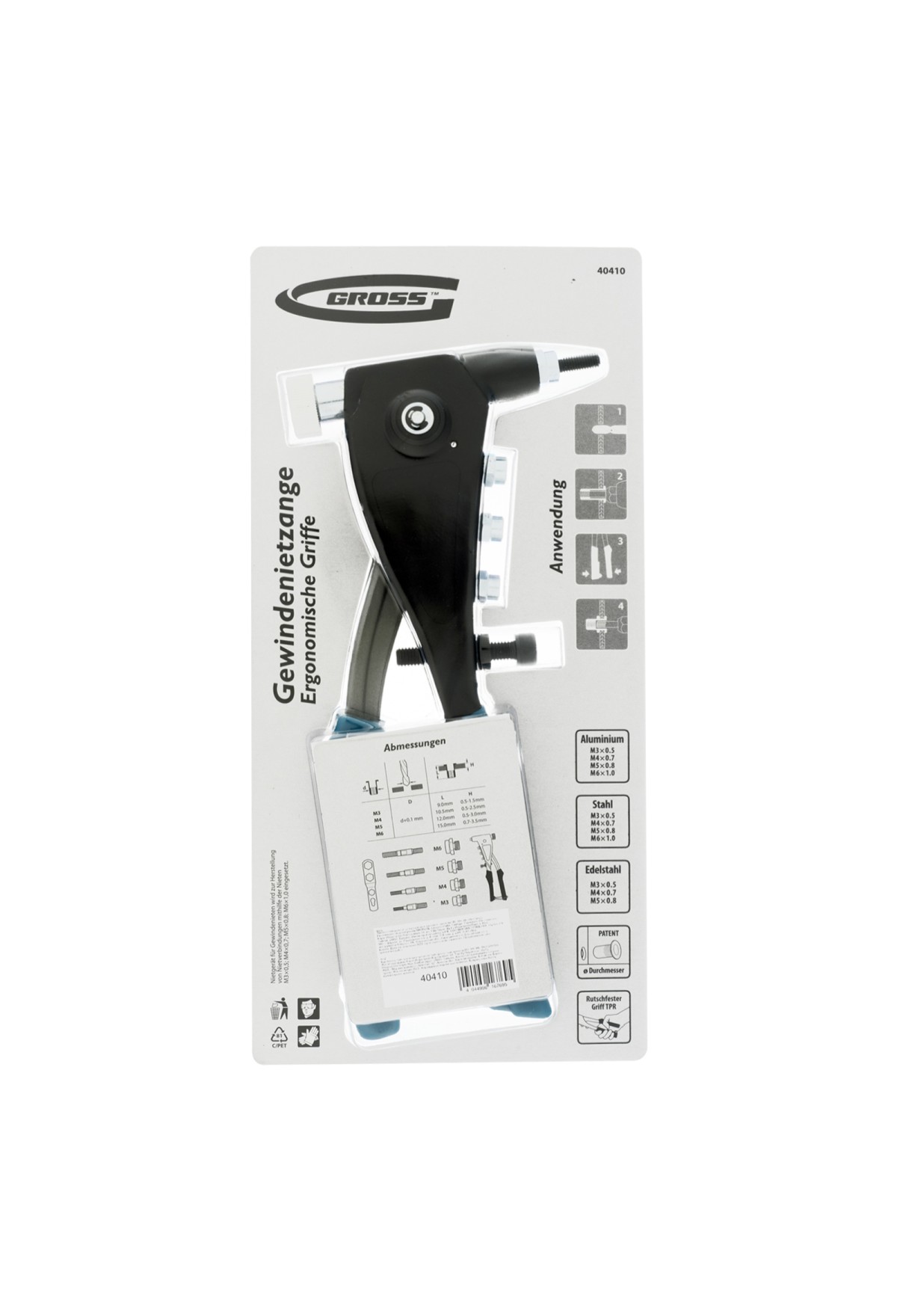 Тэги: Заклепочник для резьбовых заклепок, заклепки М3, М4, М5, M6 Gross, VR6-40410, GROSS, VR6, VR6-Заклепочники, VR6-Крепежный инструмент