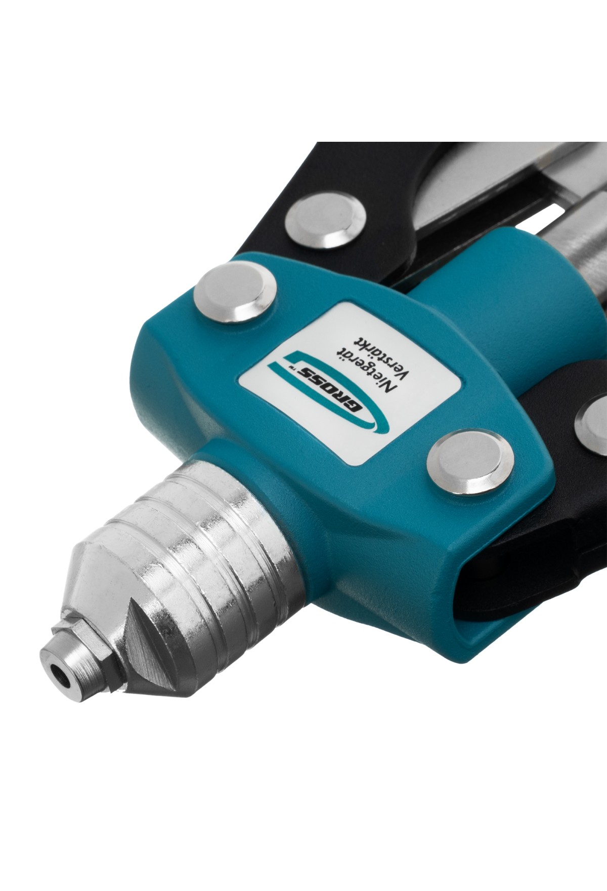 - Высокий ресурс — зажимной механизм из высокопрочной хромомолибденовой стали SCM415 устойчив к нагрузкам и обеспечивает надежный захват стержня заклепки.
