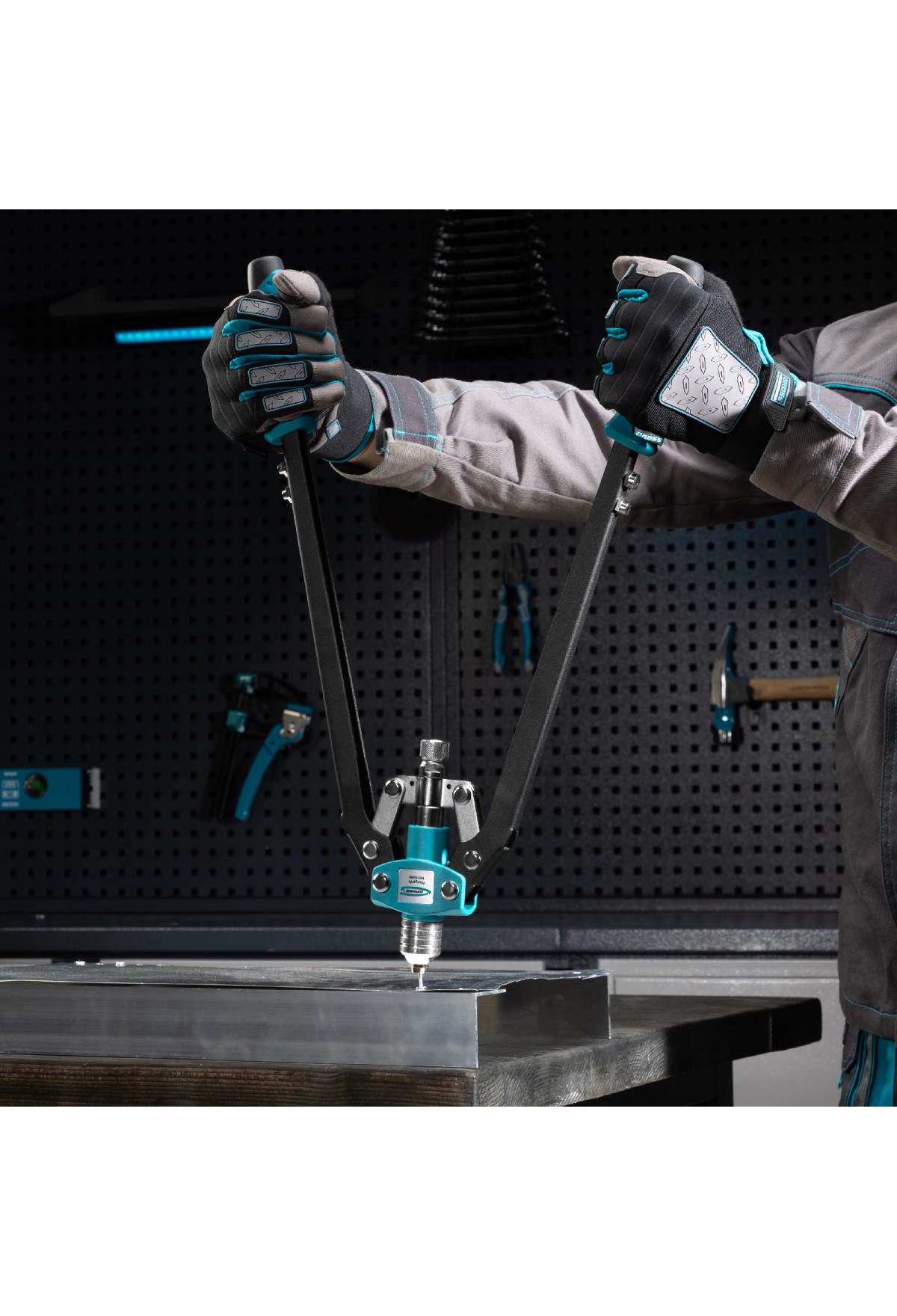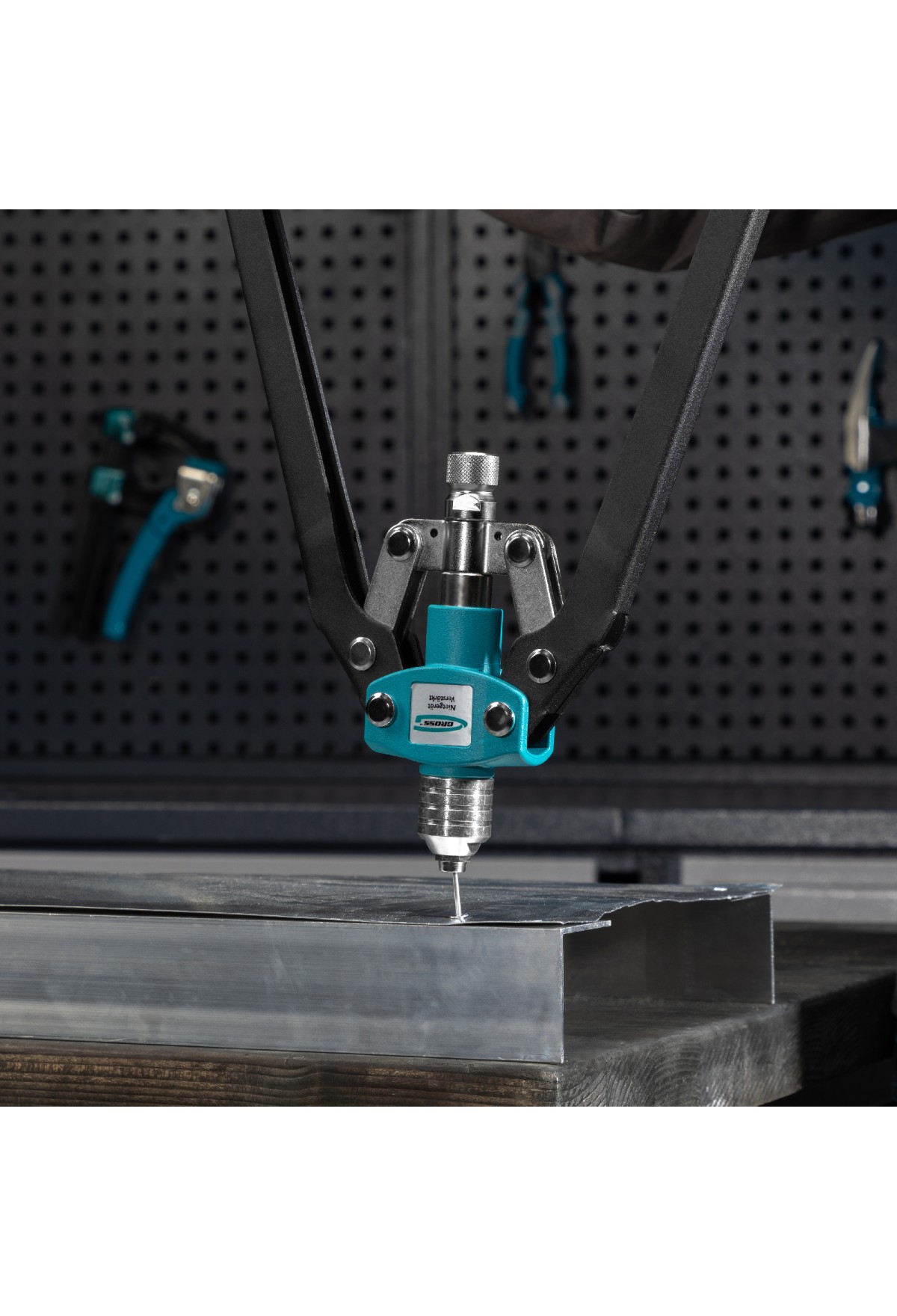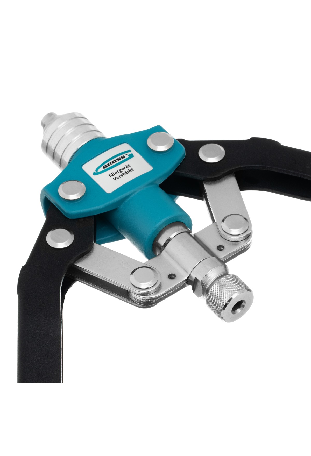 Двуручный усиленный заклепочник Gross 40409 длиной 520 мм, с удлиненными рукоятками, предназначен для соединения листовых заготовок, металлопрофиля, легких строительных конструкций и плоских деталей при помощи алюминиевых или стальных (в том числе из нержавеющей стали) заклепок размером 3,2-4,0-4,8-6,0-6,4 мм, для которых предусмотрены сменные насадки соответствующих размеров. Благодаря удлиненным рукояткам процесс клепки требует меньше усилий, чем при применении обычного инструмента. Заклепочник используется при проведении строительных и ремонтных работ, в производстве мебели, бытовой и оргтехники, а также при ремонте автомобилей.