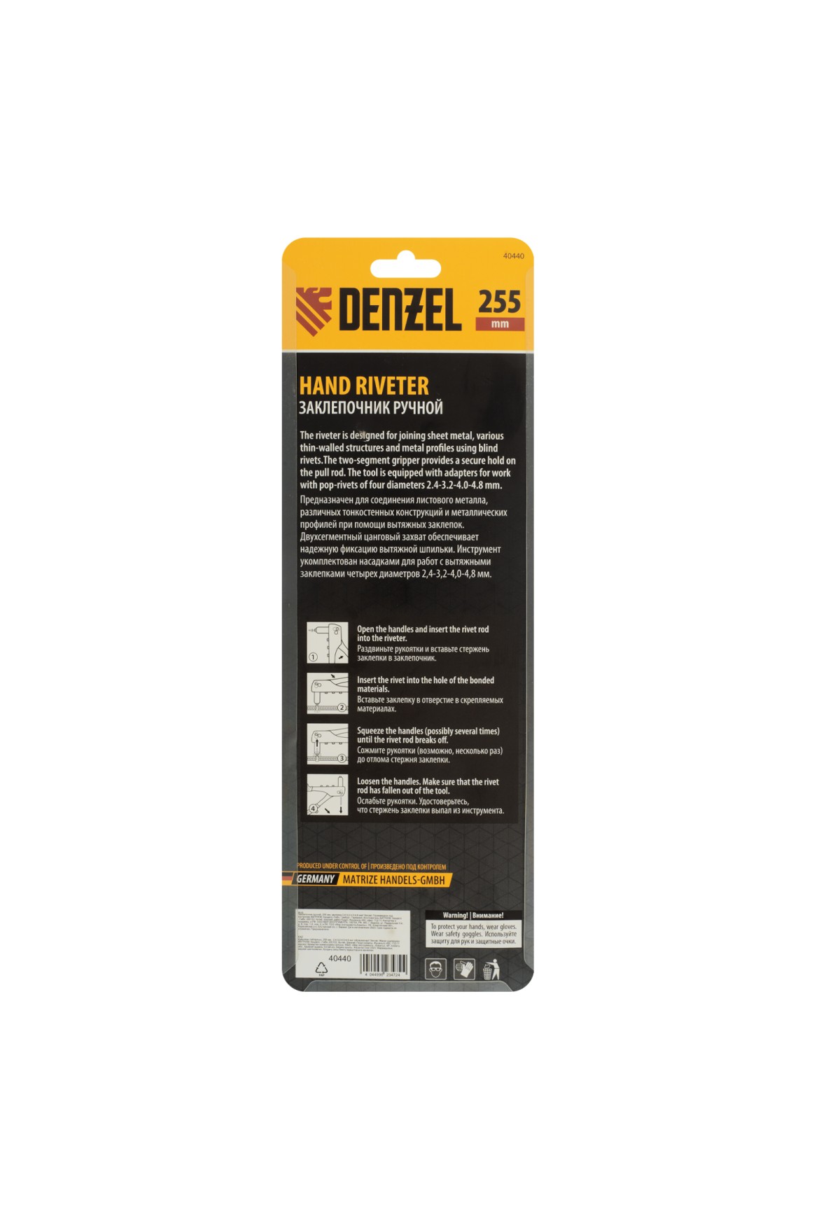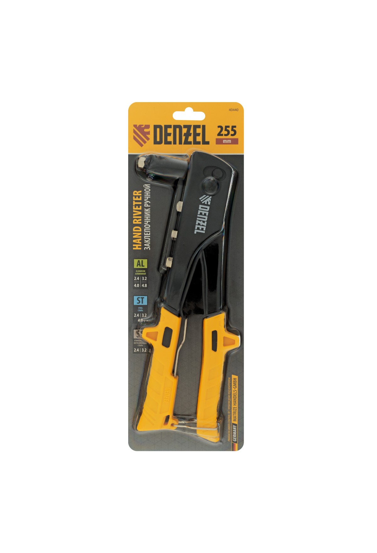 Заклепочник ручной, 285 мм, поворотный, 0-360, заклепки 2,4-3,2-4,0-4,8 мм Denzel