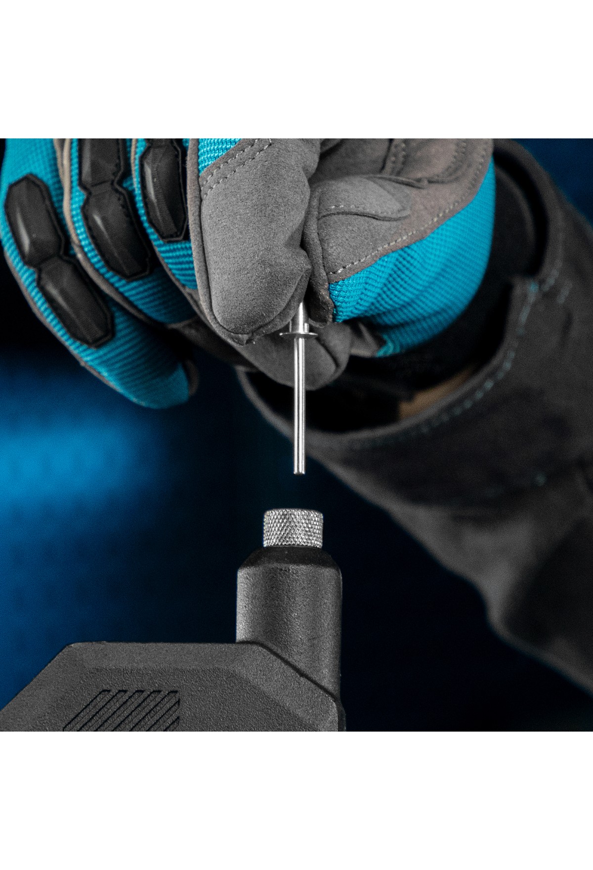 - Продуманная конструкция — сменные насадки устанавливаются в корпус заклепочника, поэтому они не потеряются.