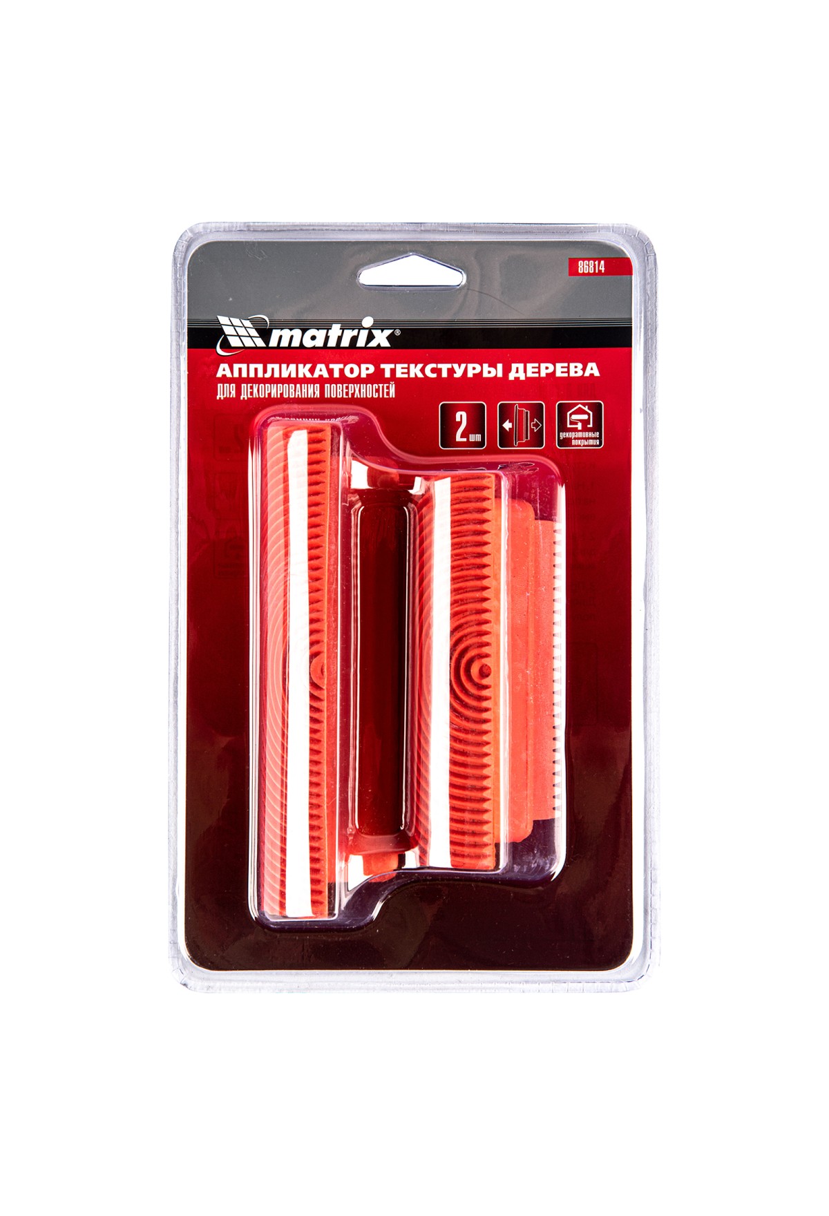 Аппликатор текстуры дерева Matrix 86814, 2 предм., используется на поверхностях из металла, пластика и других. Применяется для нанесения декоративных узоров — создает рисунок фактуры древесины. Обратную сторону аппликатора можно использовать для создания линейных узоров на декоративной краске и структурной штукатурке.