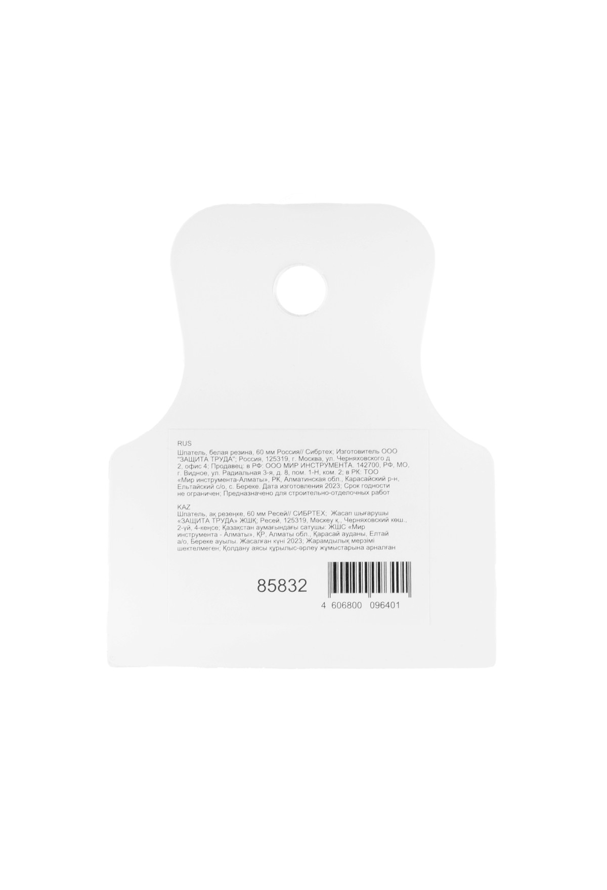 Технические характеристики Шпатель, белая резина, 60 мм Россия Сибртех