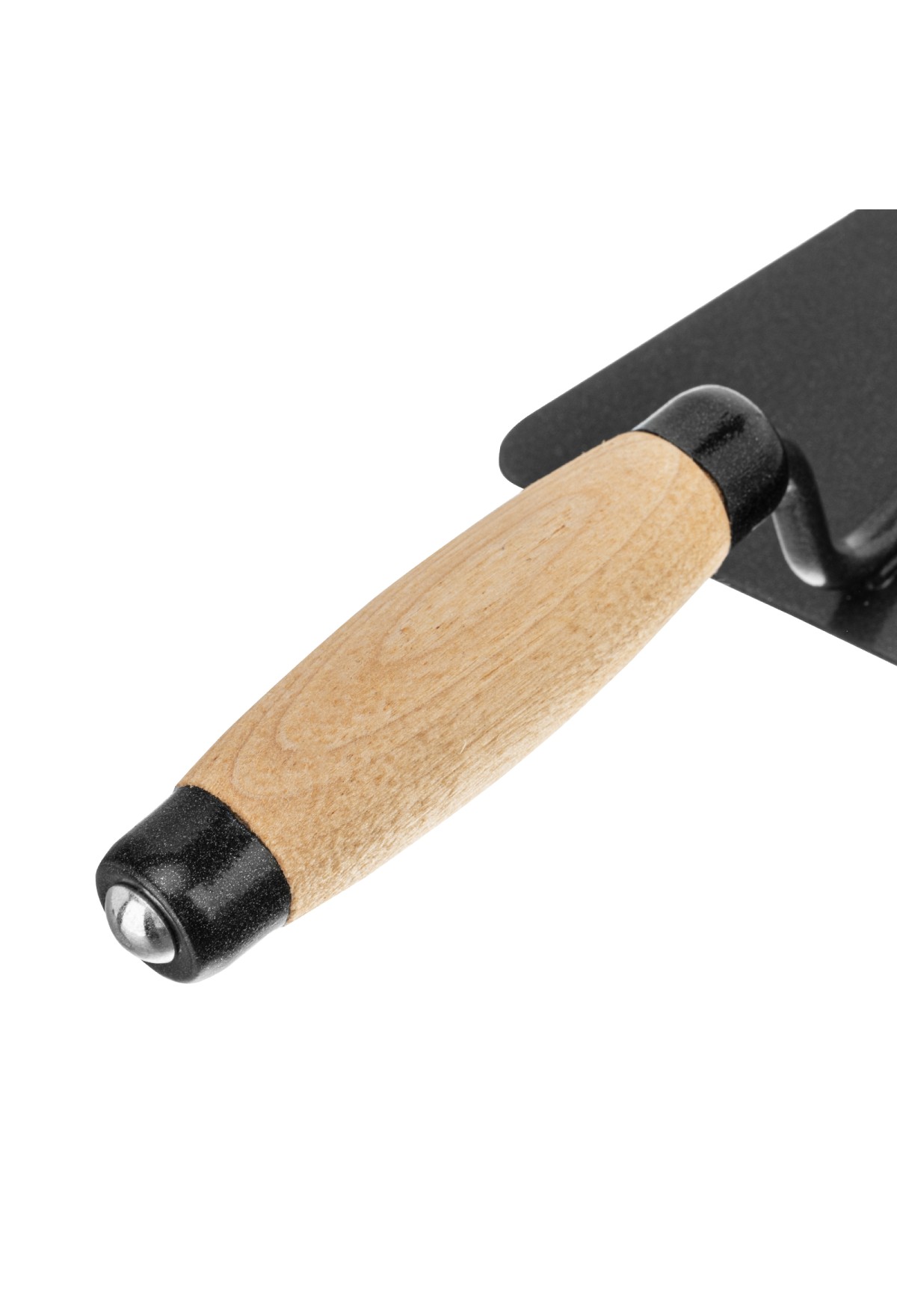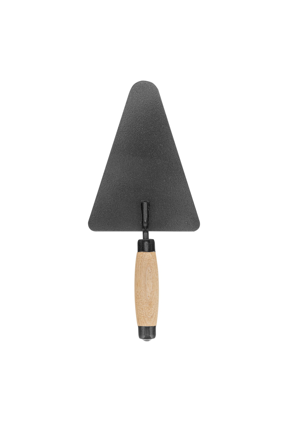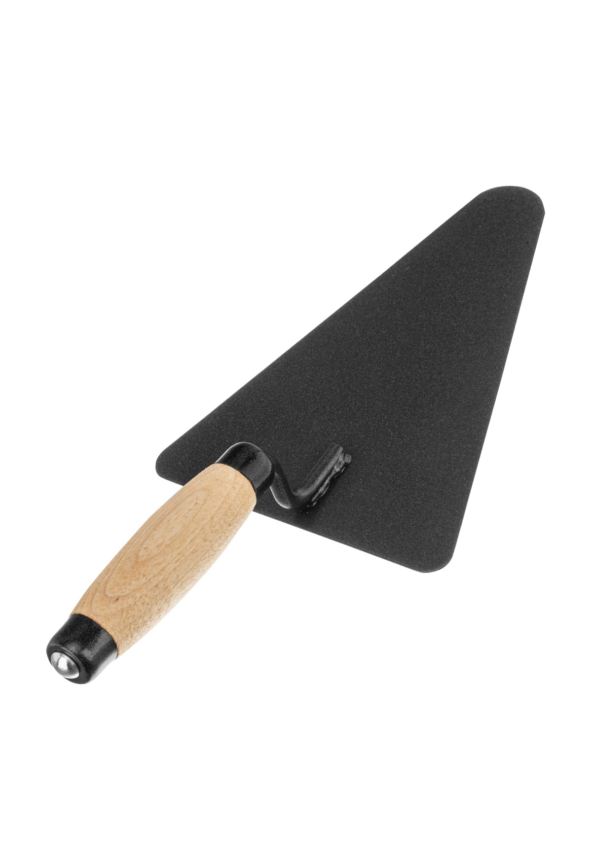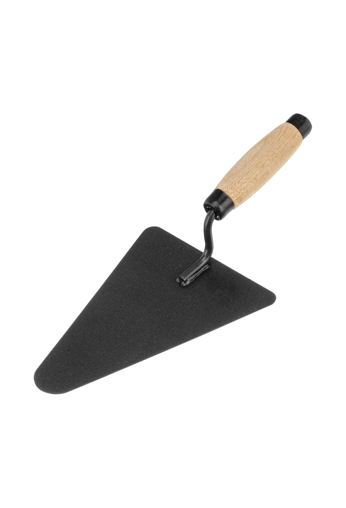 Стальная кельма бетонщика 86220 с деревянной усиленной ручкой — это незаменимый инструмент для отмеривания, замешивания цементных растворов и кладки кирпича. Полотном в форме закругленного треугольника с прямыми гранями удобно удалять излишки раствора и работать в труднодоступных местах.