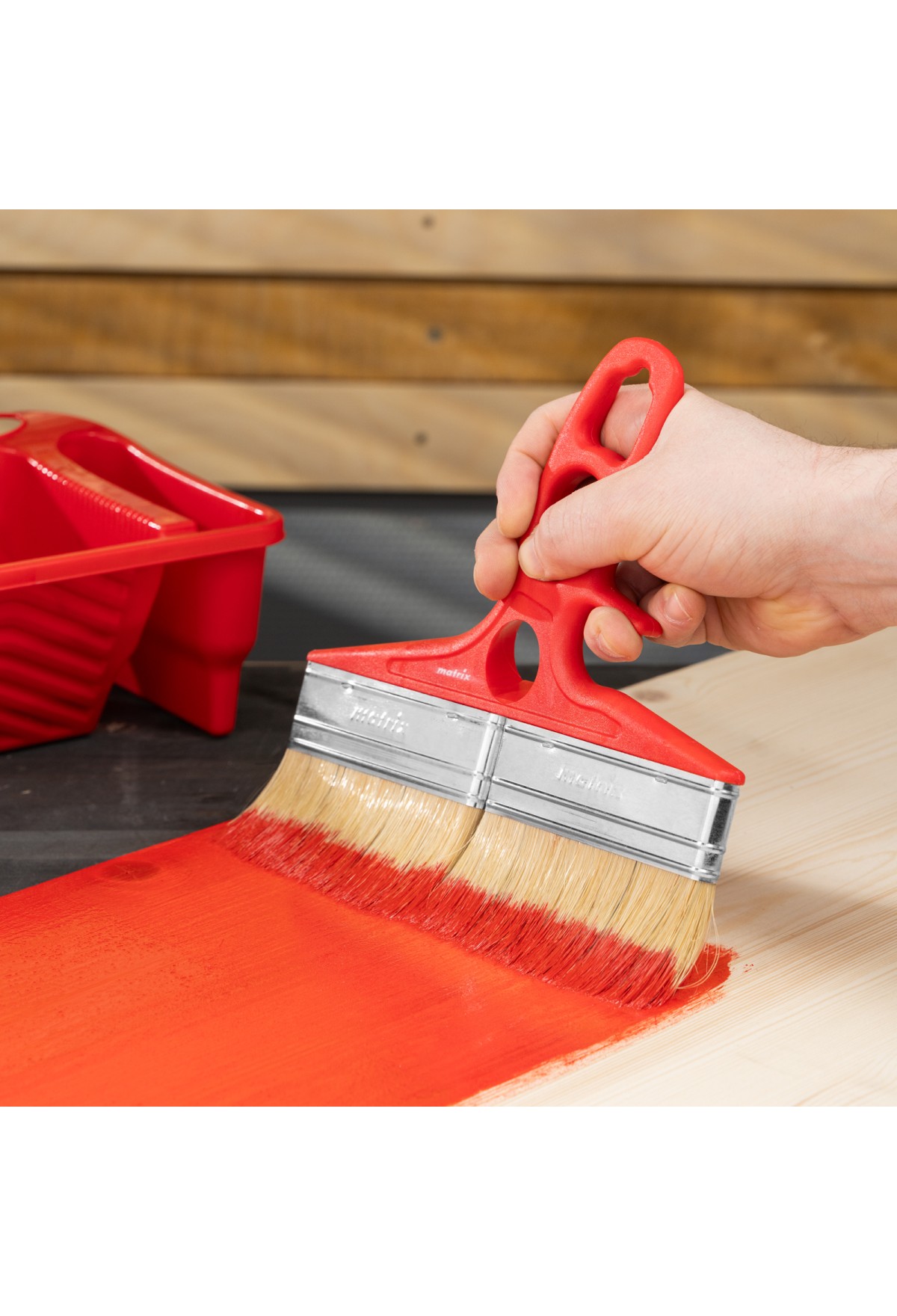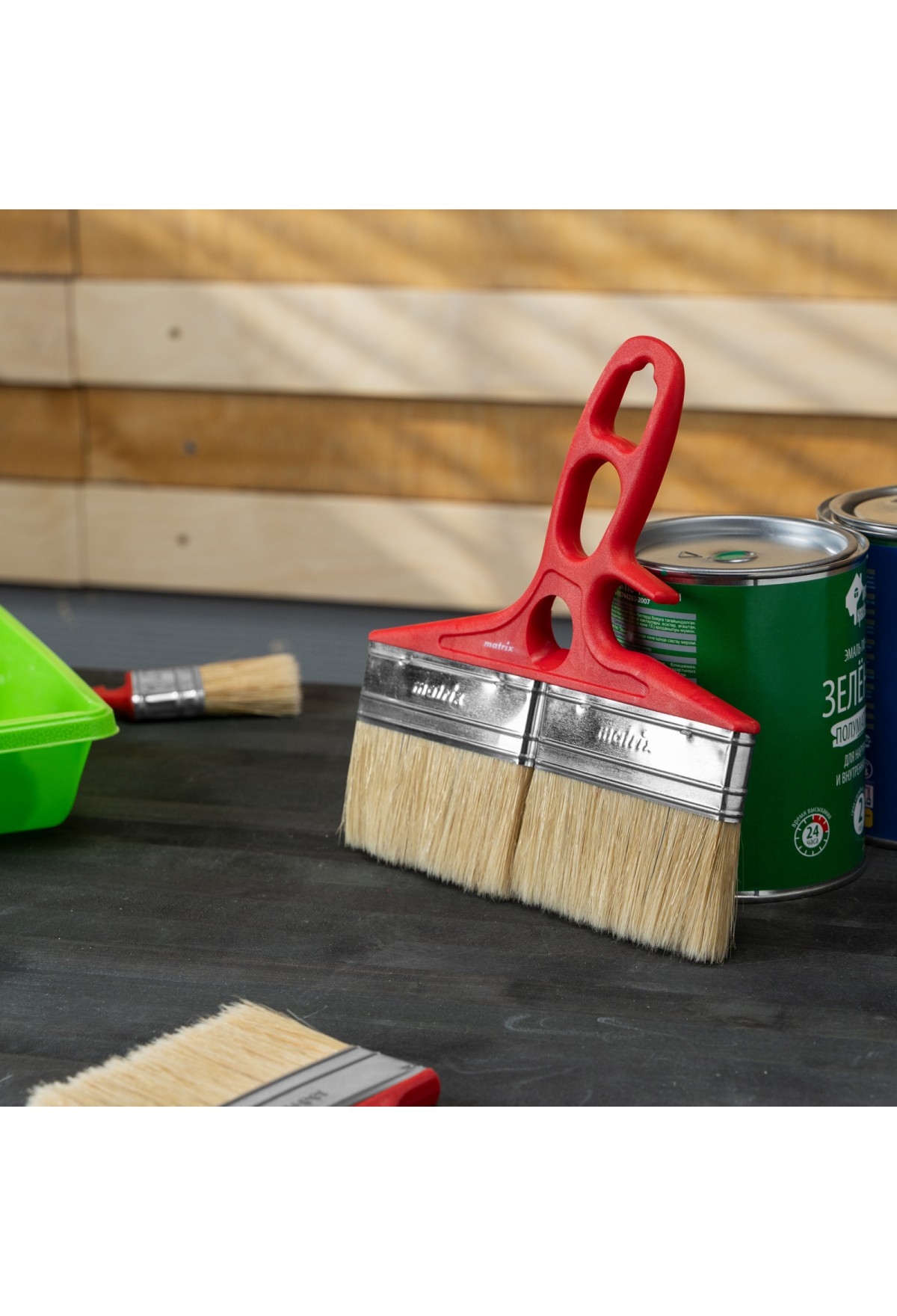 - Продуманная форма рукоятки — благодаря специальной выемке кисть можно закрепить на банке, ведре или ванночке.