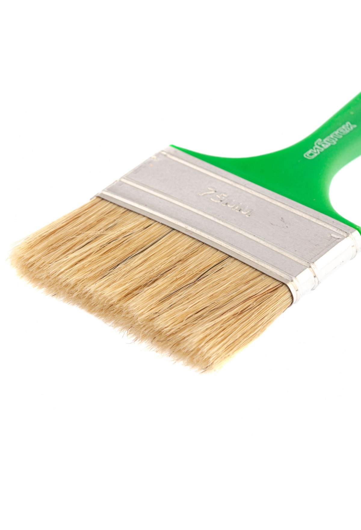 Технические характеристики Кисть флейцевая "Эксперт", 75 x 8, натуральная щетина, пластиковая ручка Сибртех