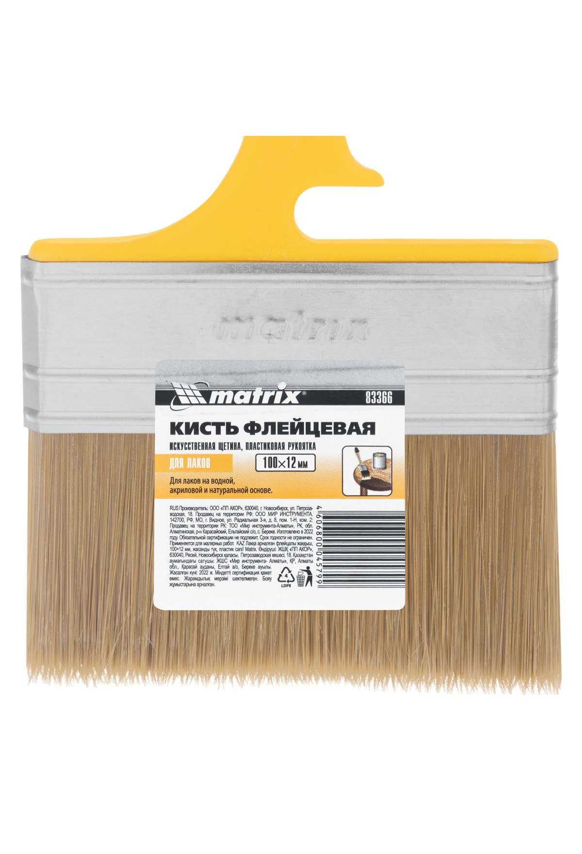Флейцевая кисть Matrix Color Line «ЛАКИ» 83366 шириной 100 мм и толщиной 12 мм используется для отделочных работ с применением лаков на акриловой, водной и натуральной основе. Ею удобно лакировать небольшие участки. Искусственная щетина отличается повышенной упругостью, поэтому кисть обеспечивает высокое качество работ.